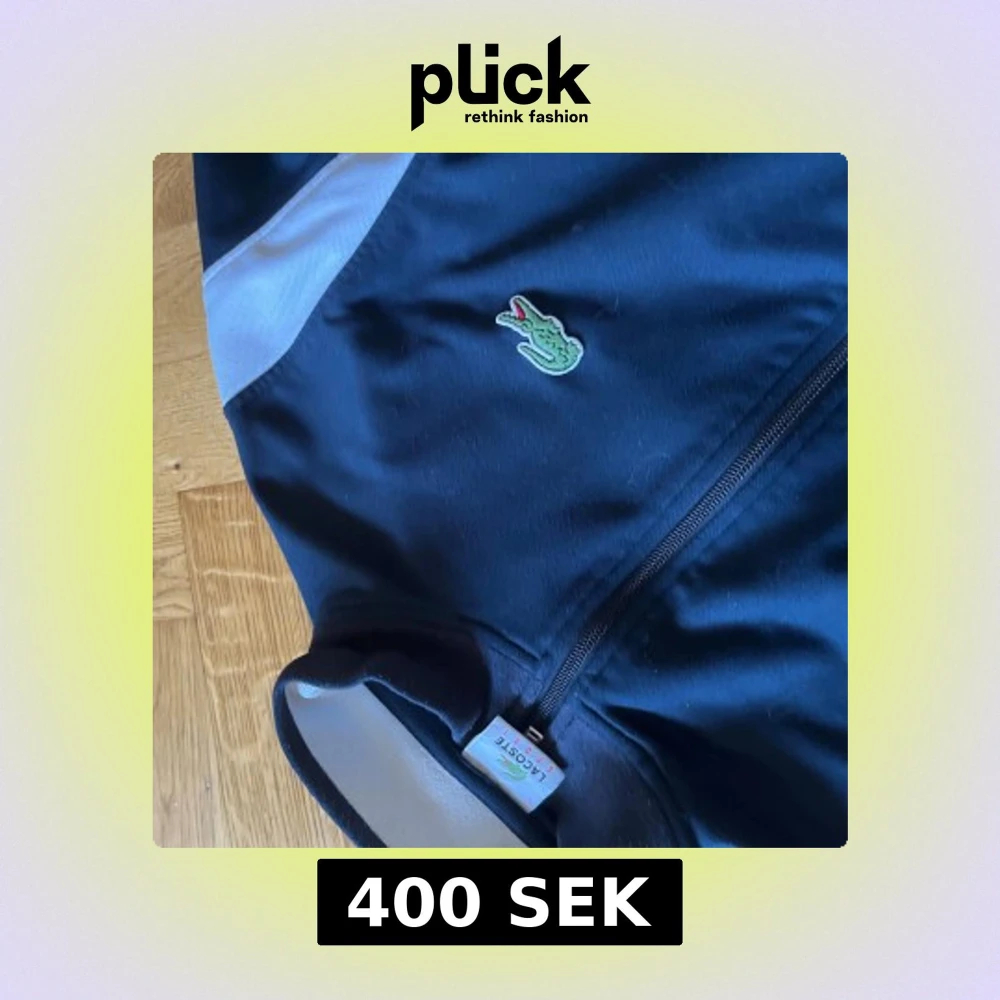 Snygg svart tröja från Lacoste med dragkedja framtill, broderad logga på bröstet och stor Lacoste-text på ryggen. Jackan har vita detaljer på axlarna och är tillverkad i polyester. Perfekt för dig som gillar sportig och clean stil. Säljs i rent och snyggt skick, vid frågor är det bara att höra av sig!