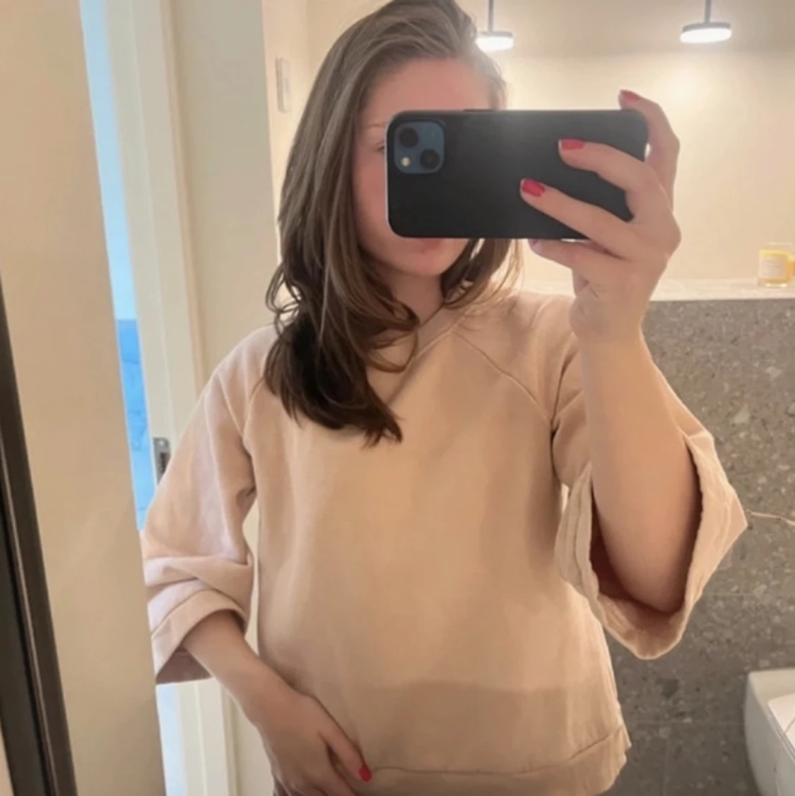 Säljer min ljusrosa trekvartsärmade tröja för att den inte är min stil. Den är använd fåtal gånger och köptes för 449 kr.