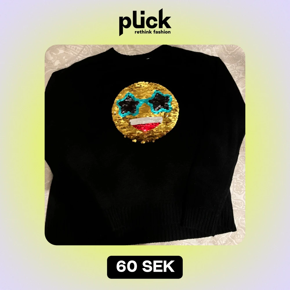 Cool svart tröja med en stor emoji i paljetter på framsidan. Paljetterna kan vändas för att ändra emojins uttryck. Perfekt för att liva upp vardagslooken eller till fest! Tröjan har långa ärmar och är gjord i ett mjukt material.