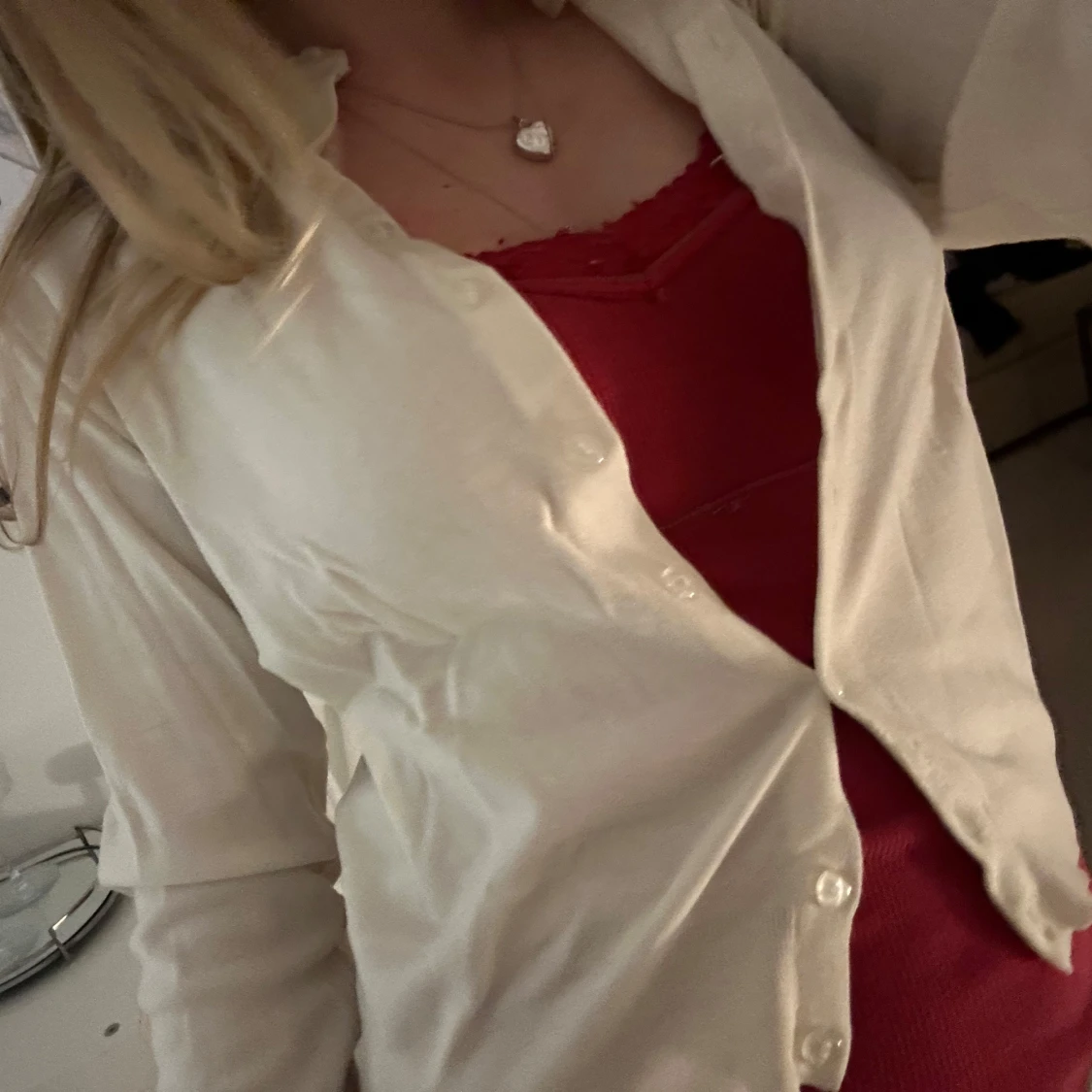 Säljer en söt vit kofta med knappar. Koftan är perfekt för lager-på-lager och har en klassisk look. Perfekt för vår och sommar! 💗