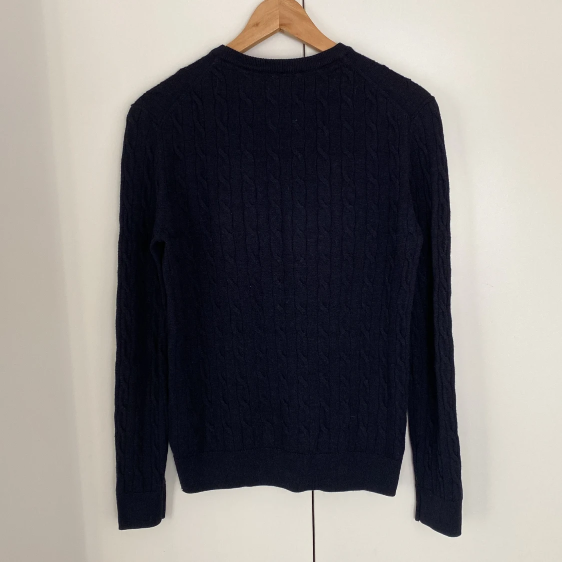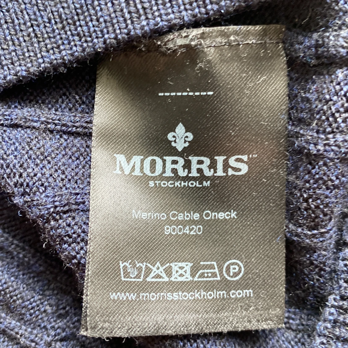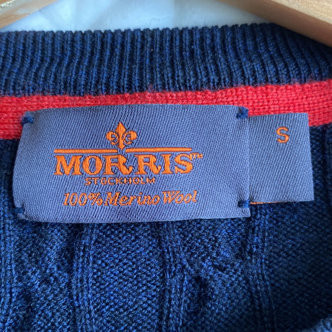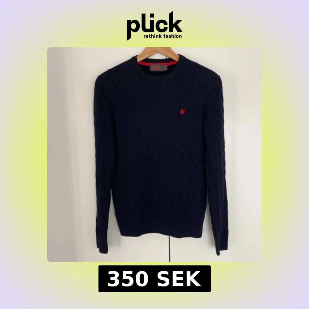 Säljer denna mörkblåa kabelstickade morris tröjan i 100% merino. Storlek small. Den är i bra skicka och är en 9/10 och har inga fläckar eller hål på sig. Passar perfekt till hösten och är riktigt snygg. Jag är 169 cm lång och den är sitter lite tajt. Jag hade rekommenderat att vara runt 160 cm för att den ska ha bättre passform. Hör av dig vid mer frågor eller funderingar!
