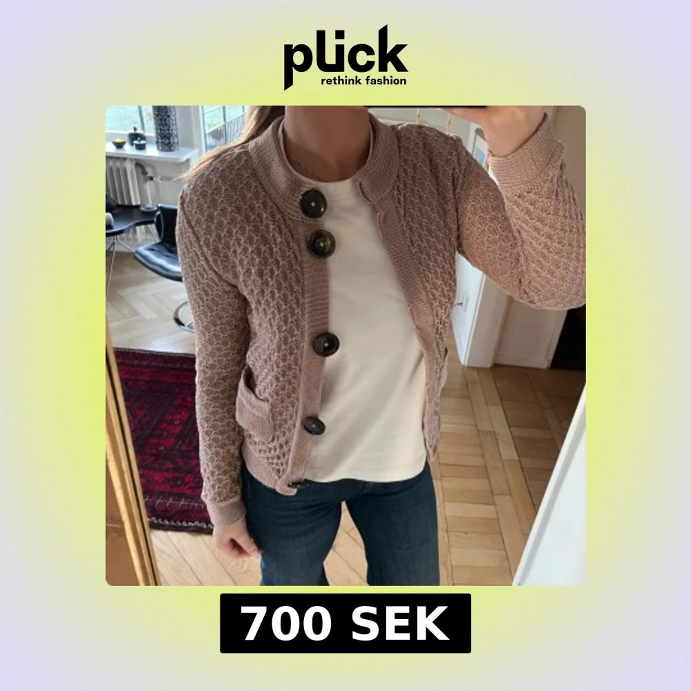 Så fin kofta från Dagmar. Färgen är beige/rosa. Mycket bra skick! Storlek L men snarare S.