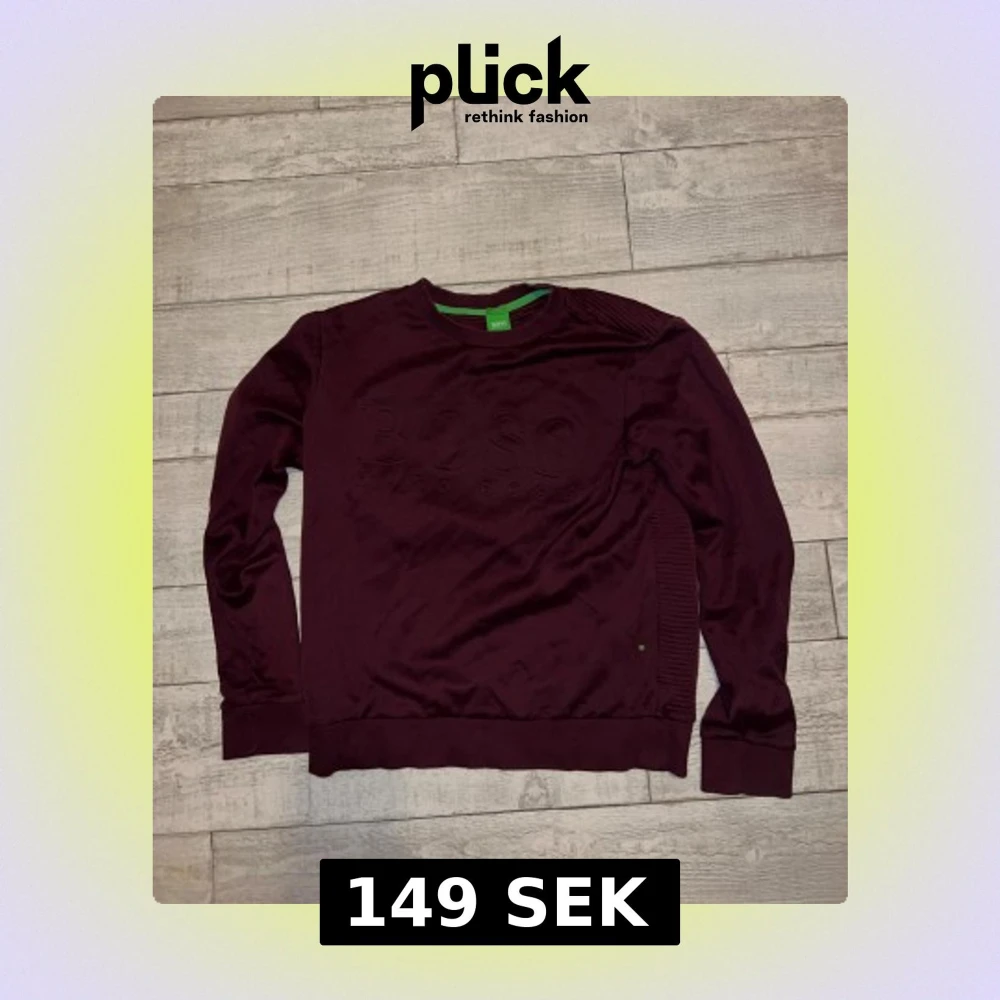 Snygg vinröd sweatshirt från Hugo Boss med diskret logga på bröstet. Tröjan har ribbade detaljer på axel och sidor samt långa ärmar. Perfekt för dig som gillar stilrena och moderna plagg med lite edge. (Finns ett litet hål på baksidan som knappt syns) Nypris:899:-