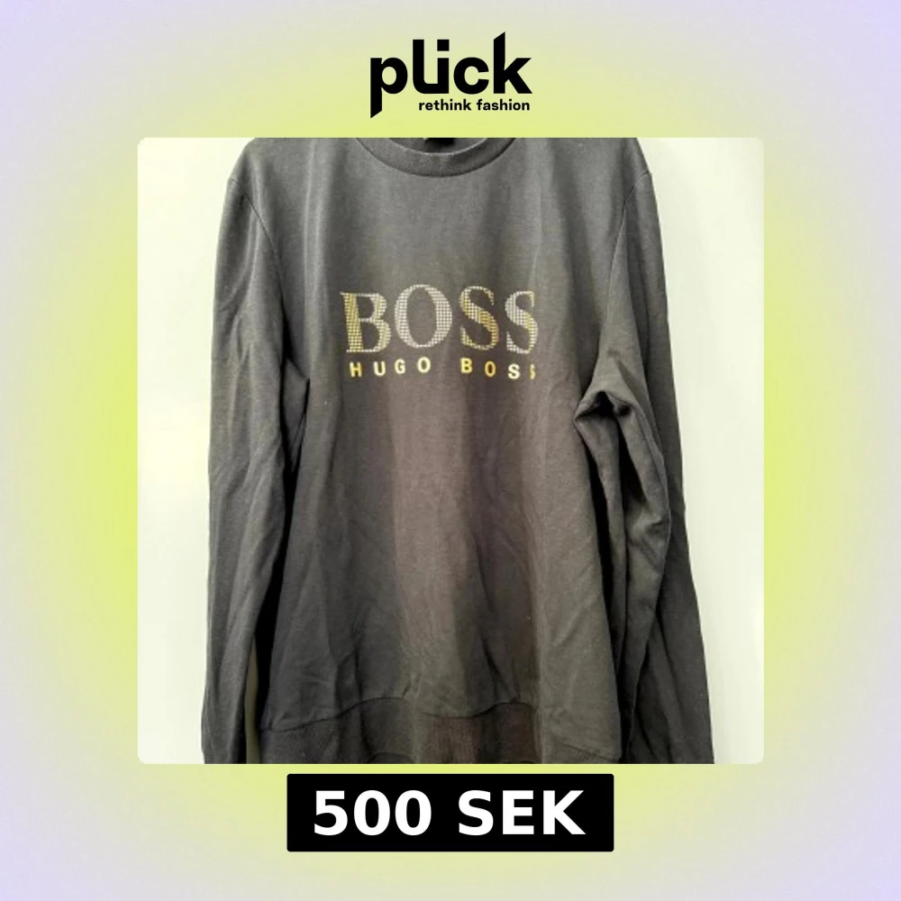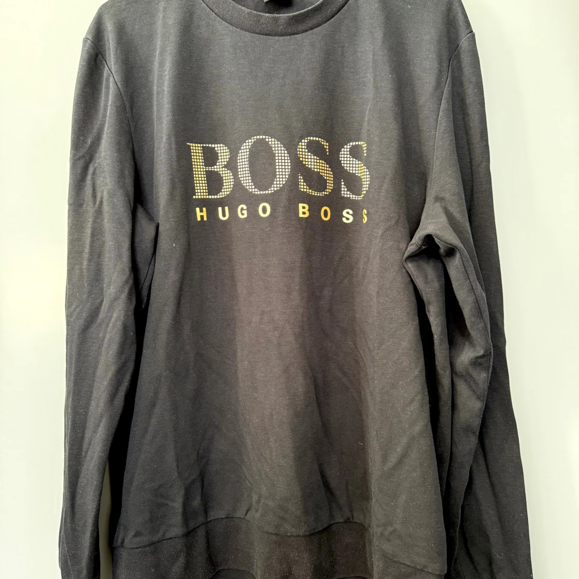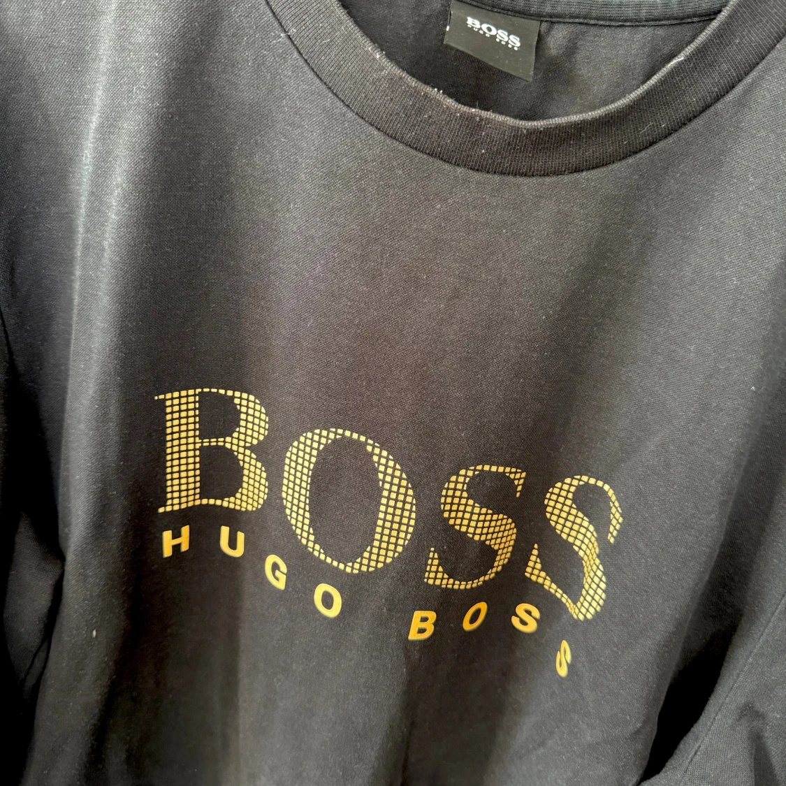 Svart sweatshirt från Hugo Boss med stort gult BOSS-tryck framtill. Tröjan har rund halsringning, långa ärmar och är tillverkad i mjuk bomull. Perfekt för dig som gillar stilrena och klassiska plagg med en tydlig logga.
