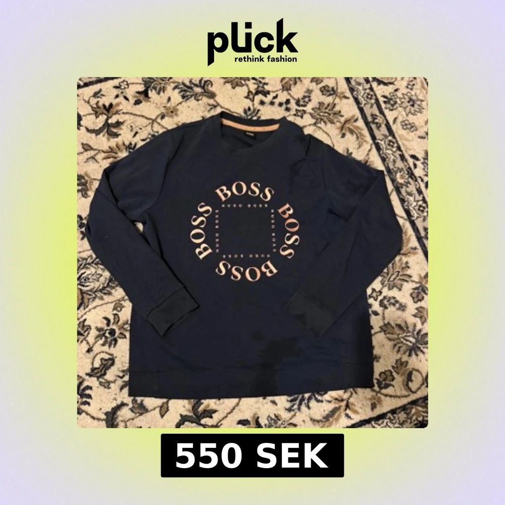 Snygg mörkblå sweatshirt från Hugo Boss med stort BOSS-tryck i ljusrosa på bröstet. Tröjan har rund hals, långa ärmar och ribbade muddar. Perfekt för dig som gillar stilrena och trendiga märkesplagg med en clean look.