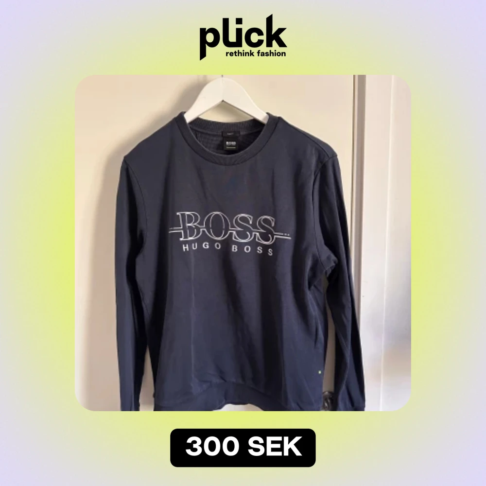 Marinblå sweatshirt från Hugo Boss i storlek M. Använd men i bra skick därför bra pris.