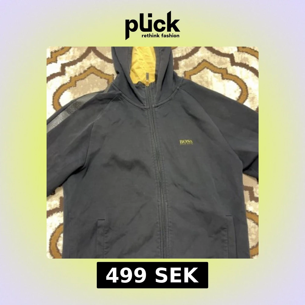 Svart kofta från Hugo Boss med gul insida på huvan och diskret logga på bröstet. Jackan har hel dragkedja, huva och två fickor framtill. Snygga detaljer med Boss-tryck längs insidan av dragkedjan. Perfekt för dig som gillar stilren och sportig look.