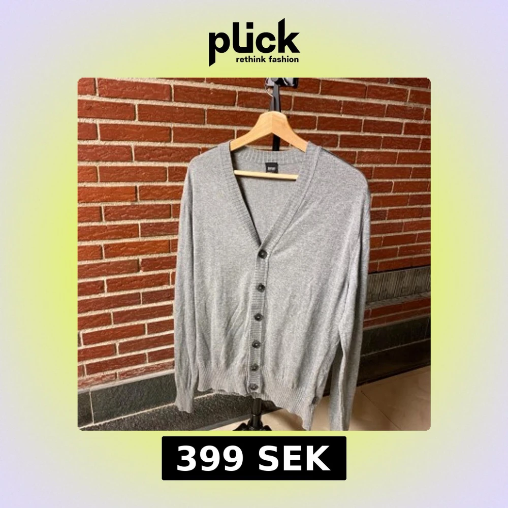 Snygg grå kofta från Hugo Boss med v-ringning och svarta knappar framtill. Tröjan har ribbade muddar och är långärmad, perfekt för lager-på-lager. Tillverkad i mjuk bomullsmix som känns skön mot huden.