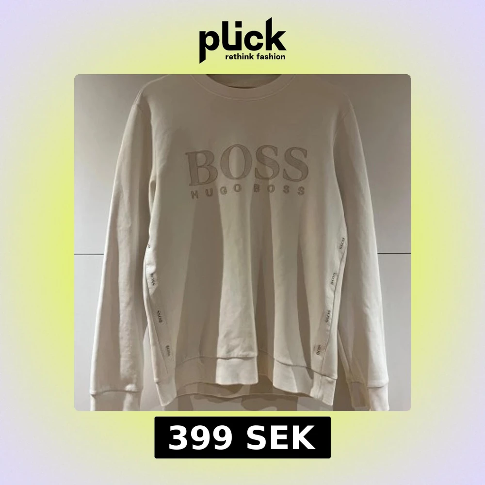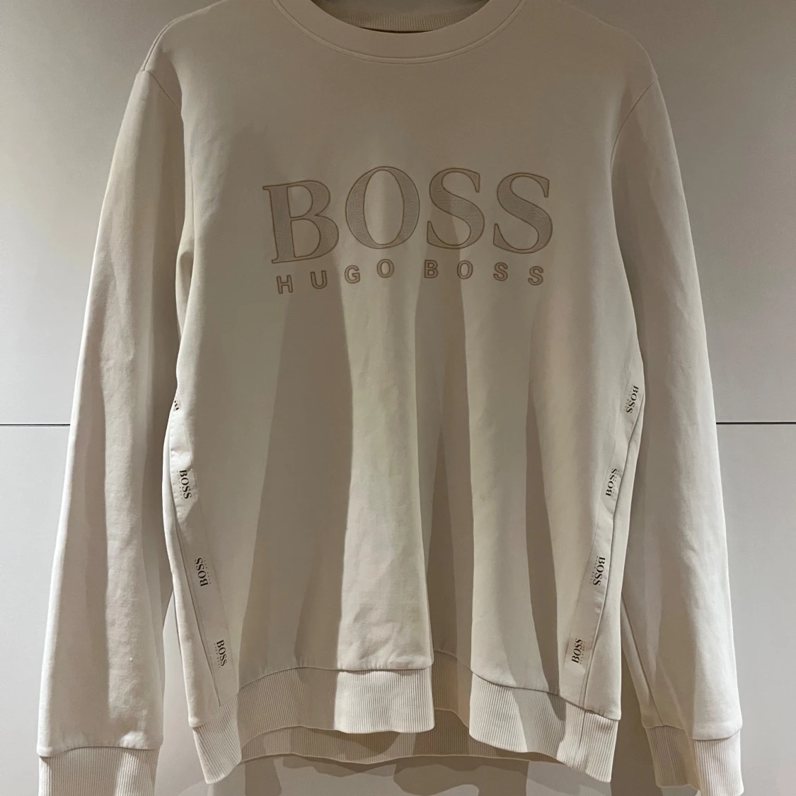 Snygg vit sweatshirt från Hugo Boss med broderad logga framtill och diskreta Boss-detaljer längs ärmarna. Klassisk rund halsringning och ribbade muddar. Perfekt för en clean och stilren look.