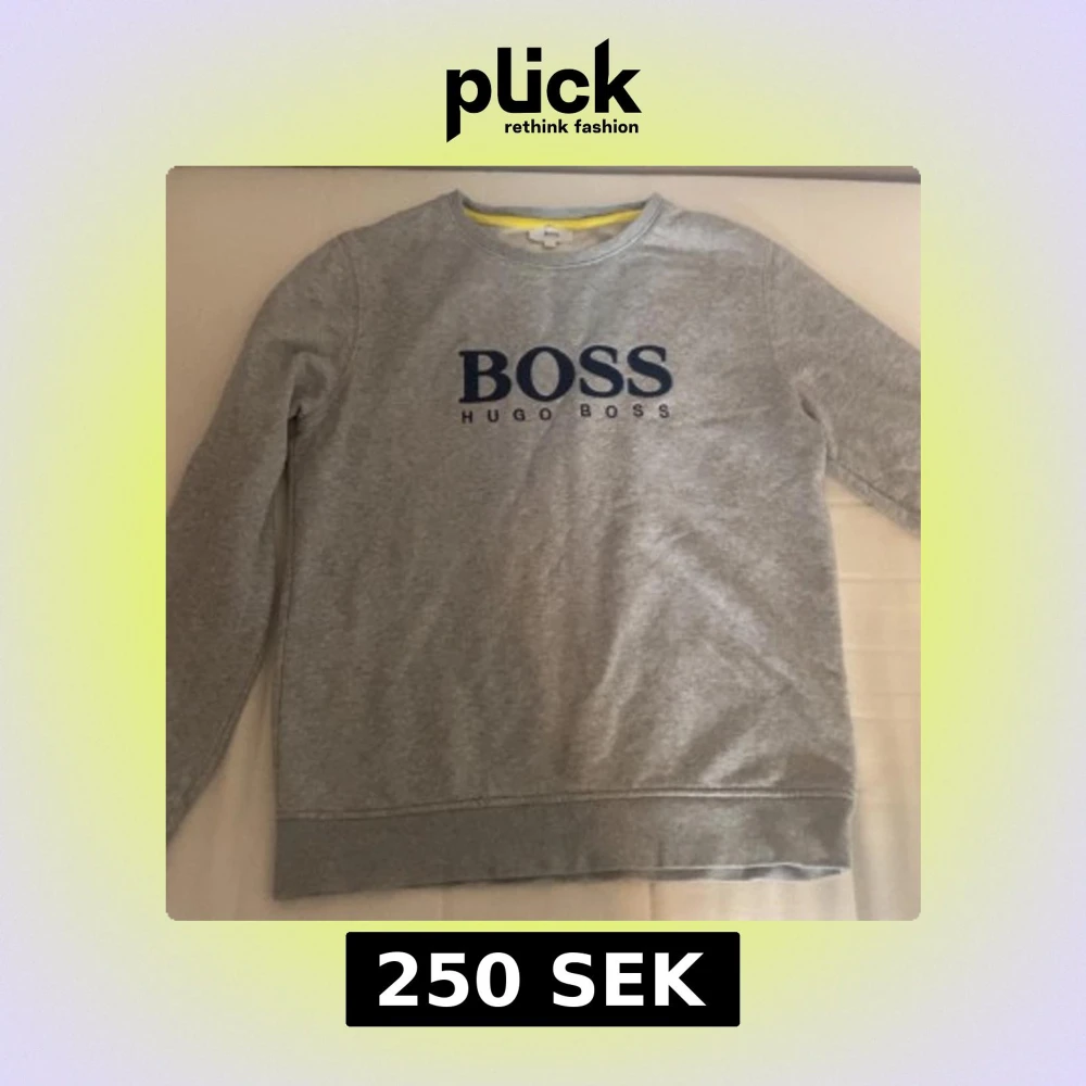Grå sweatshirt från Hugo Boss med mörkblå BOSS-logga framtill. Klassisk rund halsringning och långa ärmar. Tillverkad i mjuk bomullsmix, perfekt för en chill och stilren look.