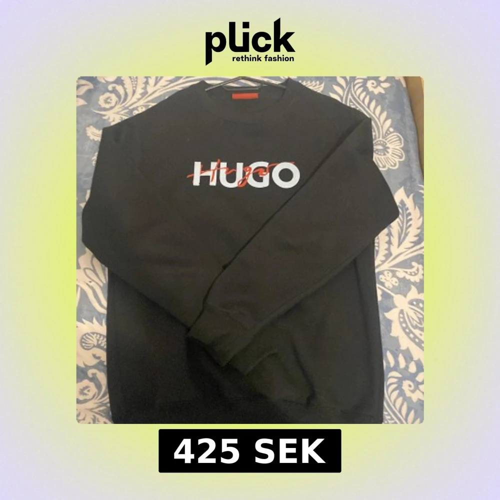 Svart sweatshirt från Hugo Boss med stor HUGO-logga i vitt och rött framtill. Tröjan har rund hals, ribbade muddar och är tillverkad i mjuk bomull. Perfekt för dig som gillar stilrena och snygga märkesplagg.