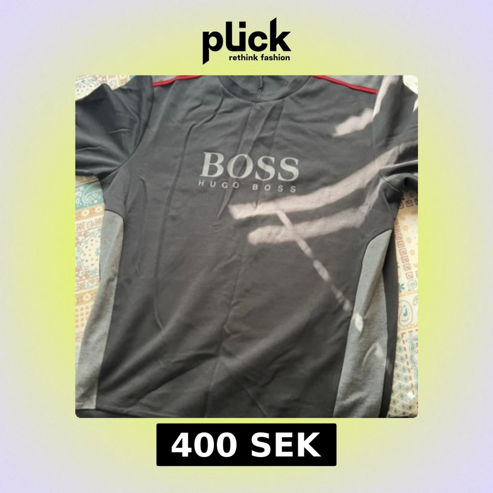 Snygg svart sweatshirt från Hugo Boss med grå logga på bröstet. Den har långa ärmar och röda detaljer på axlarna. Perfekt för en stilren look.