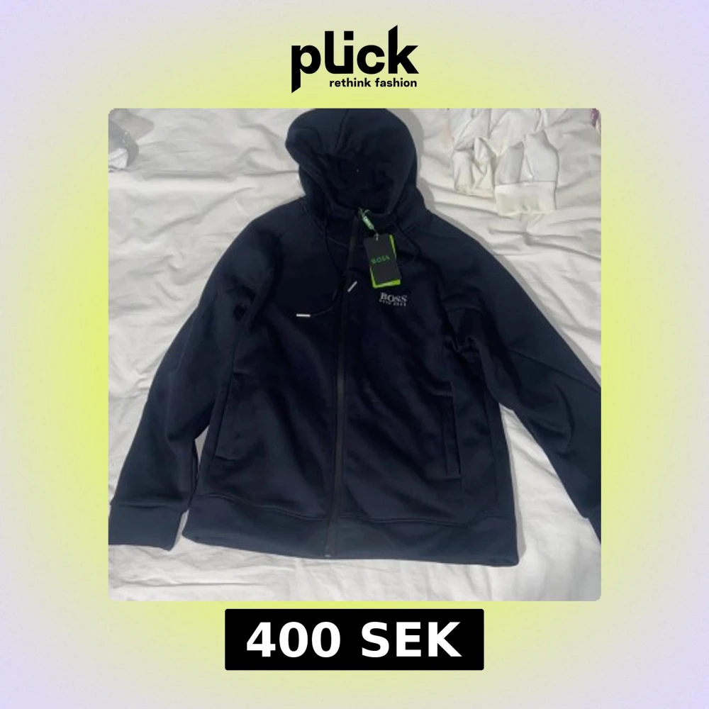 Säljer en svart hoodie från Hugo Boss med dragkedja och huva. Tröjan har snörning vid huvan och logga på bröstet. Perfekt för dig som gillar stilrena och klassiska plagg. Materialet känns mjukt och bekvämt.