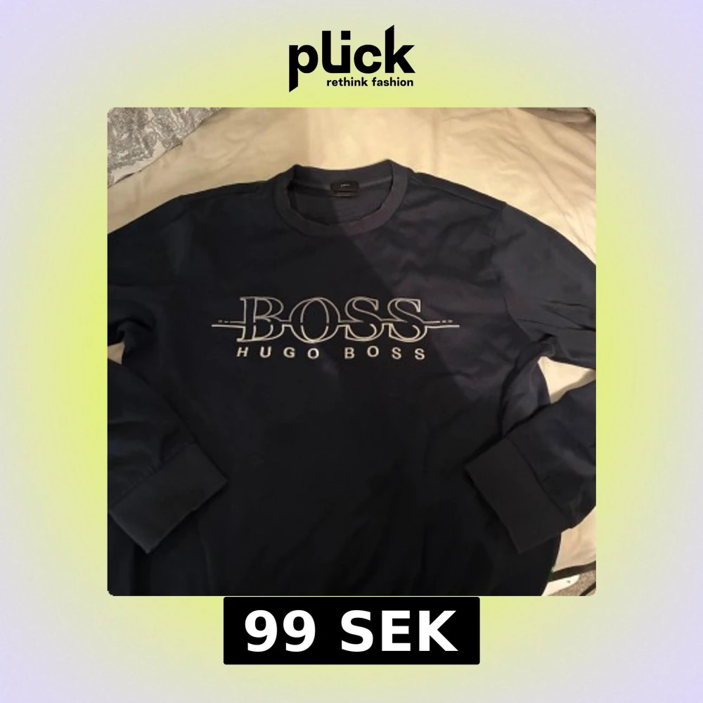 Snygg marinblå sweatshirt från Hugo Boss med stort vitt logotryck på bröstet. Tröjan har rund hals, långa ärmar och ribbade muddar. Perfekt för dig som gillar stilrena och klassiska plagg med en modern touch.