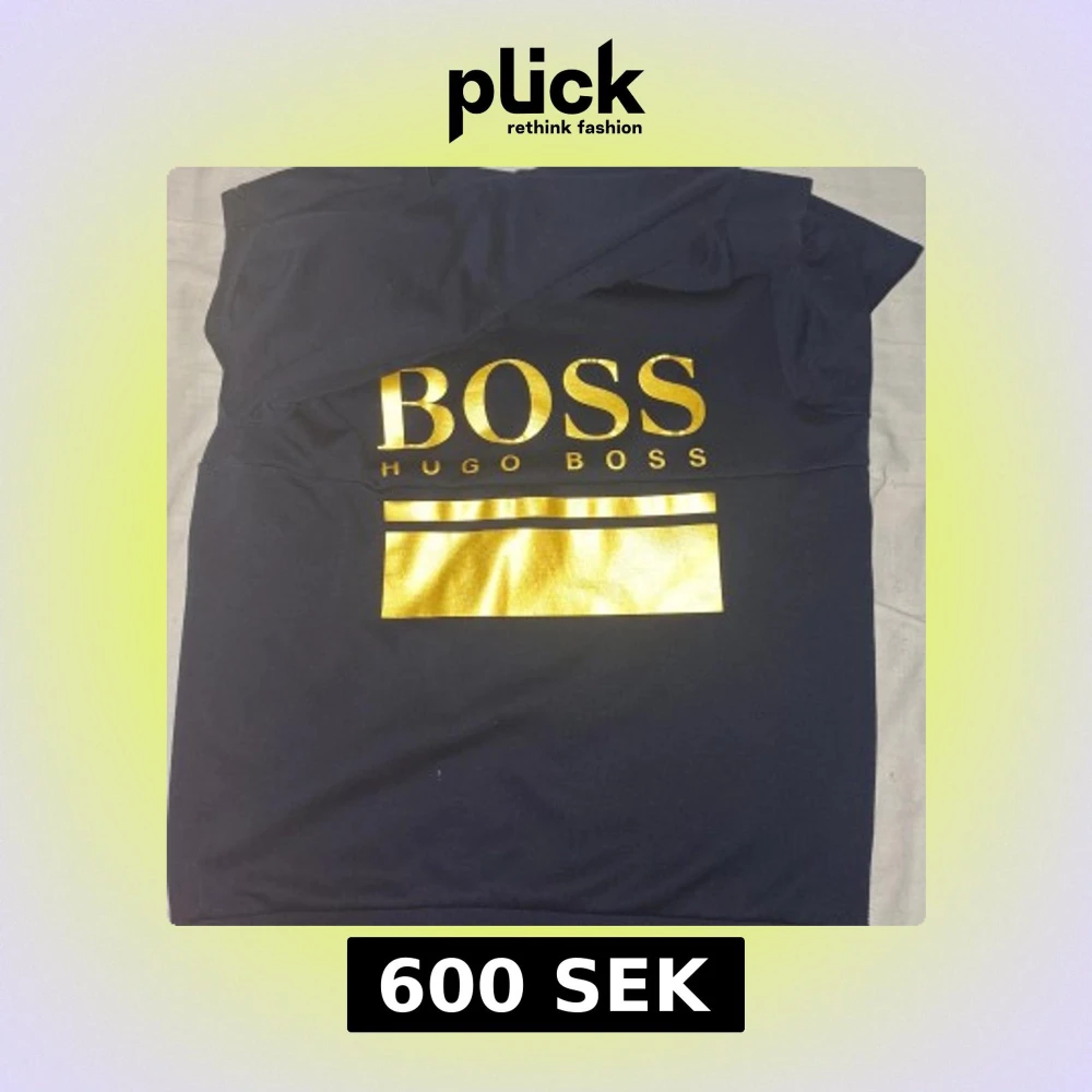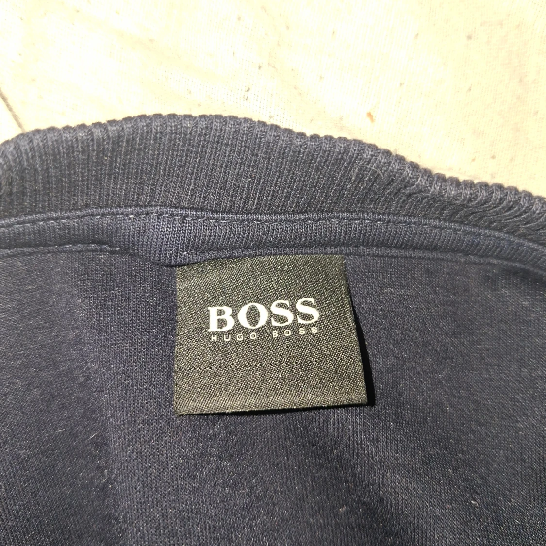 Svart långärmad tröja från Hugo Boss med stort guldigt BOSS-tryck och logga framtill. Klassisk rund halsringning och ribbade muddar. Perfekt för dig som gillar stilrena och lyxiga detaljer.