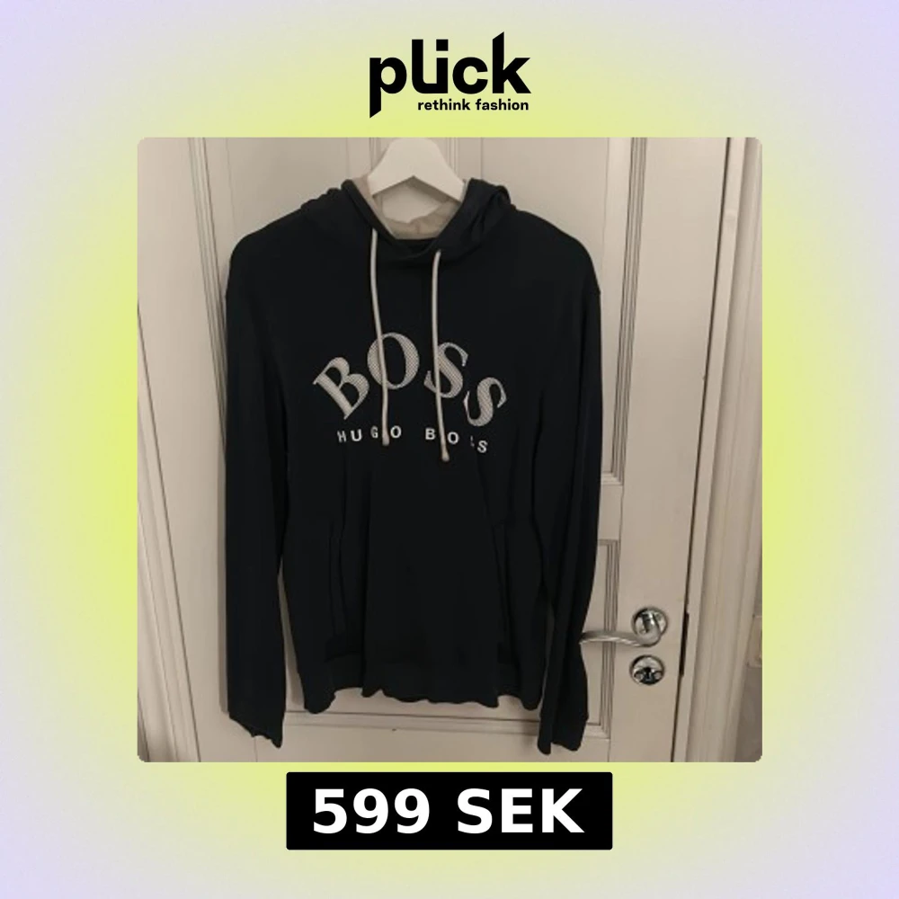 Säljer en stilren mörkblå hoodie från Hugo Boss med vit logga på bröstet. Passar bra för en avslappnad look.