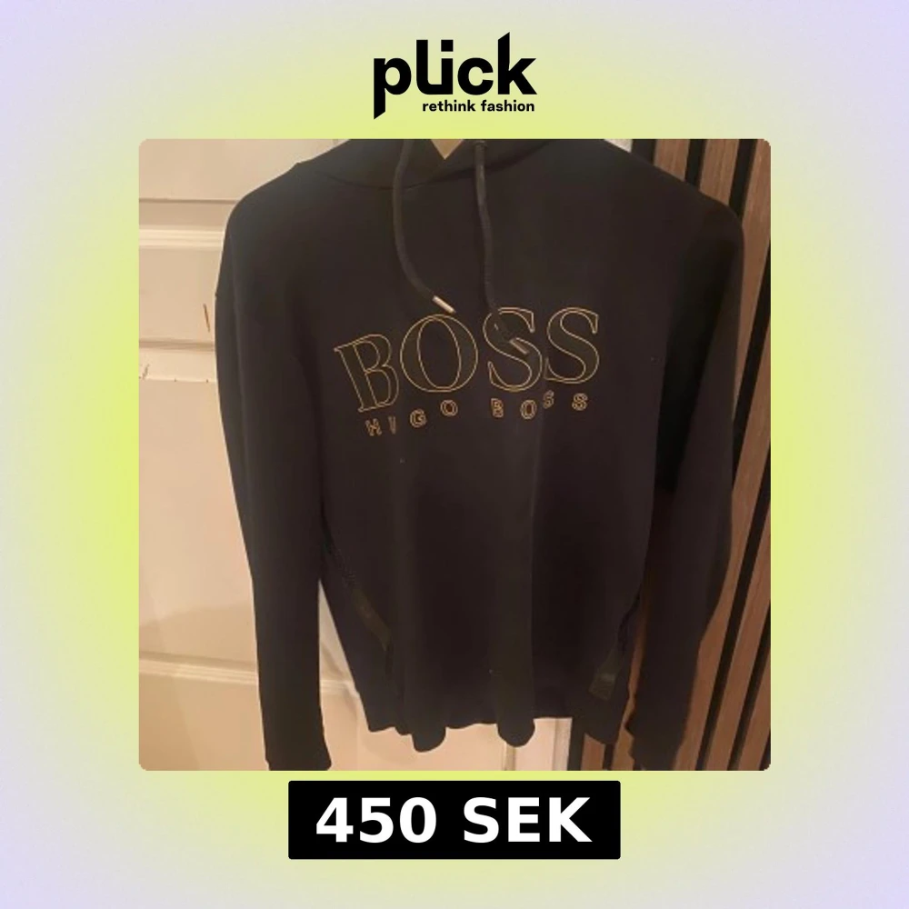 Svart hoodie från Hugo Boss med stor guldfärgad logga på bröstet. Klassisk huva med snörning och långa ärmar. Perfekt för dig som gillar stilrena och trendiga plagg med premiumkänsla.