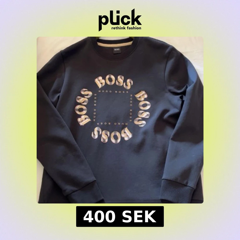 Snygg svart sweatshirt från Hugo Boss med ett coolt cirkulärt logotyptryck på framsidan. Tröjan har långa ärmar och en rund halsringning.