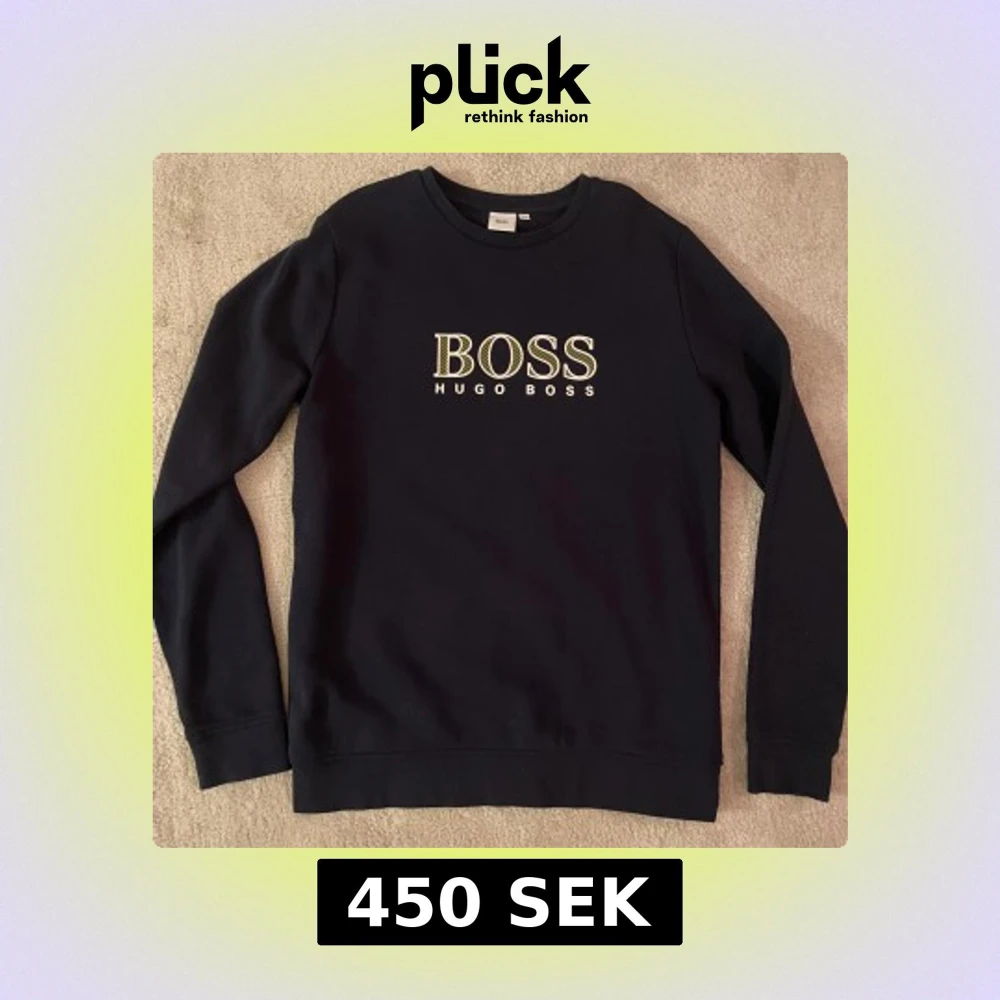 Snygg svart tröja från Hugo Boss med deras ikoniska logga i gult på bröstet. Tröjan har långa ärmar och en klassisk rund halsringning. Perfekt för en stilren och avslappnad look.