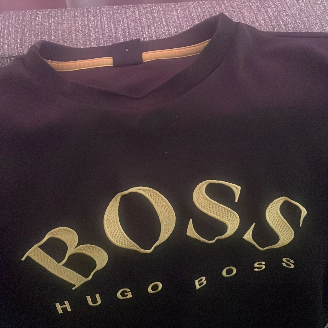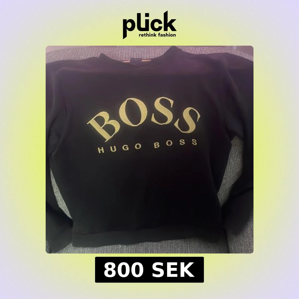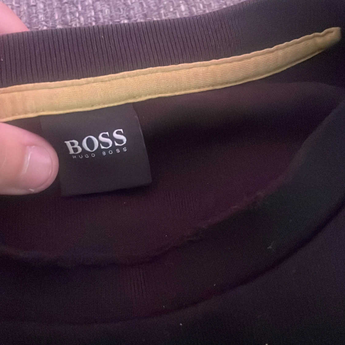 Svart sweatshirt från Hugo Boss med stort gult BOSS-tryck framtill. Klassisk rund halsringning och långa ärmar. Snygg och enkel design med gul detalj på insidan av kragen. Perfekt för dig som gillar stilrena märkesplagg.