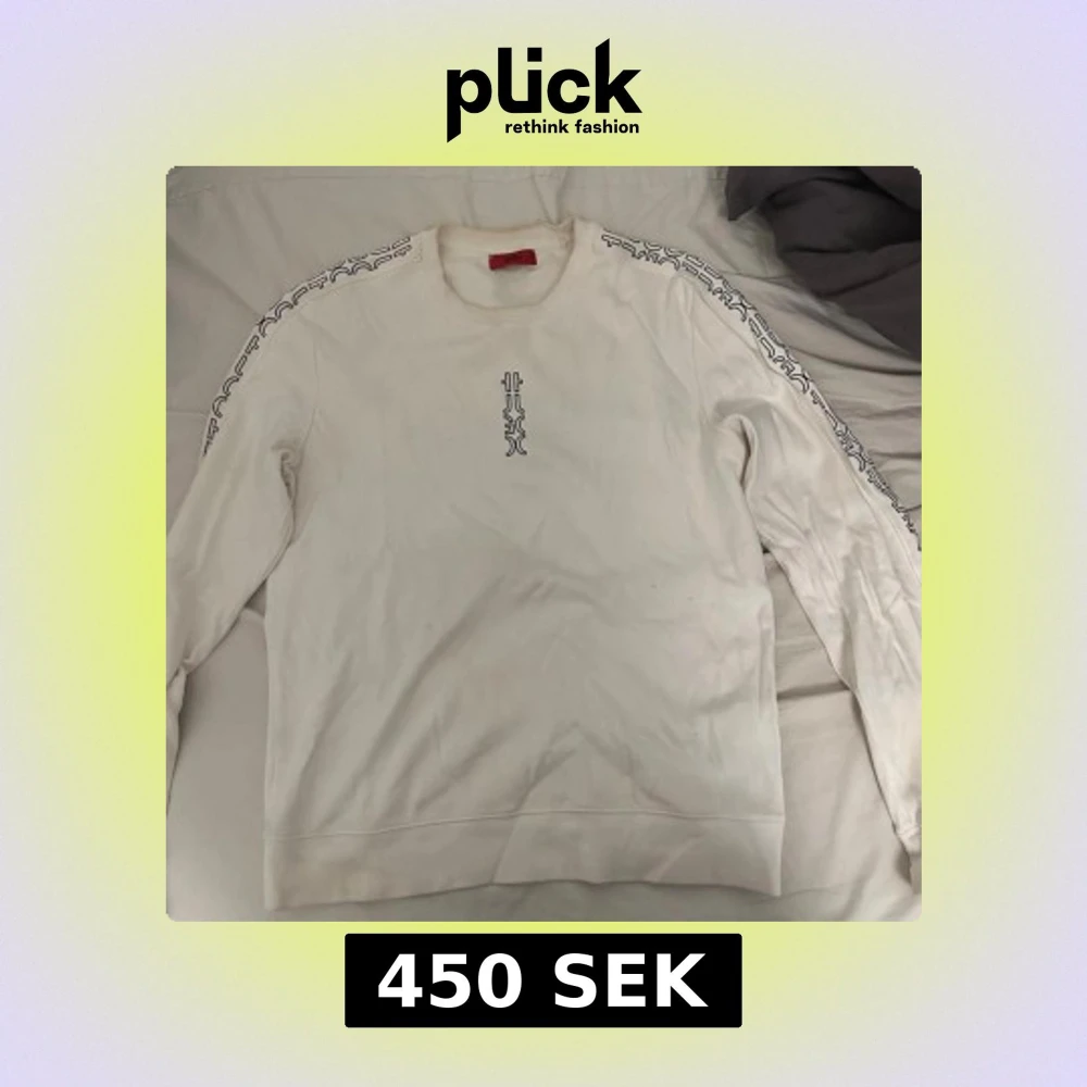 Vit tjocktröja från Hugo med design på både armar även i mitten av tröjan.