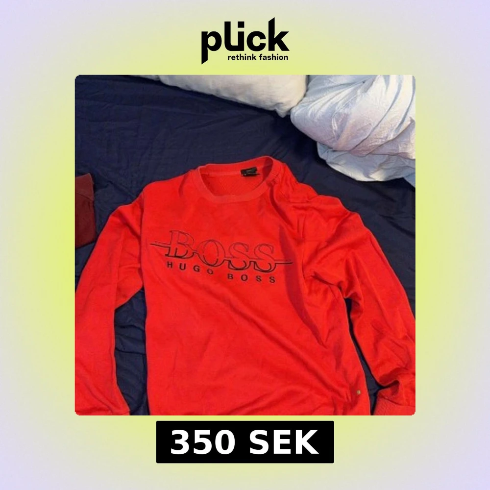 Snygg röd långärmad tröja från Hugo Boss med stort svart BOSS-tryck på bröstet. Klassisk rund halsringning och mjukt material som känns skönt mot huden. Perfekt för dig som gillar stilrena loggoplagg.