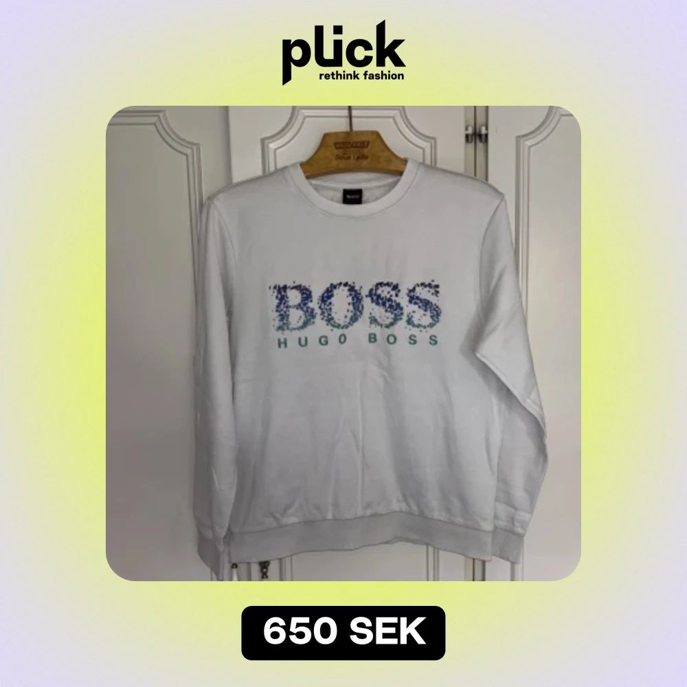 Storlek M. Mycket bra skick. Vit Hugo boss tröja med broderat tryck i blåt och grönt. Nypris: 1299kr