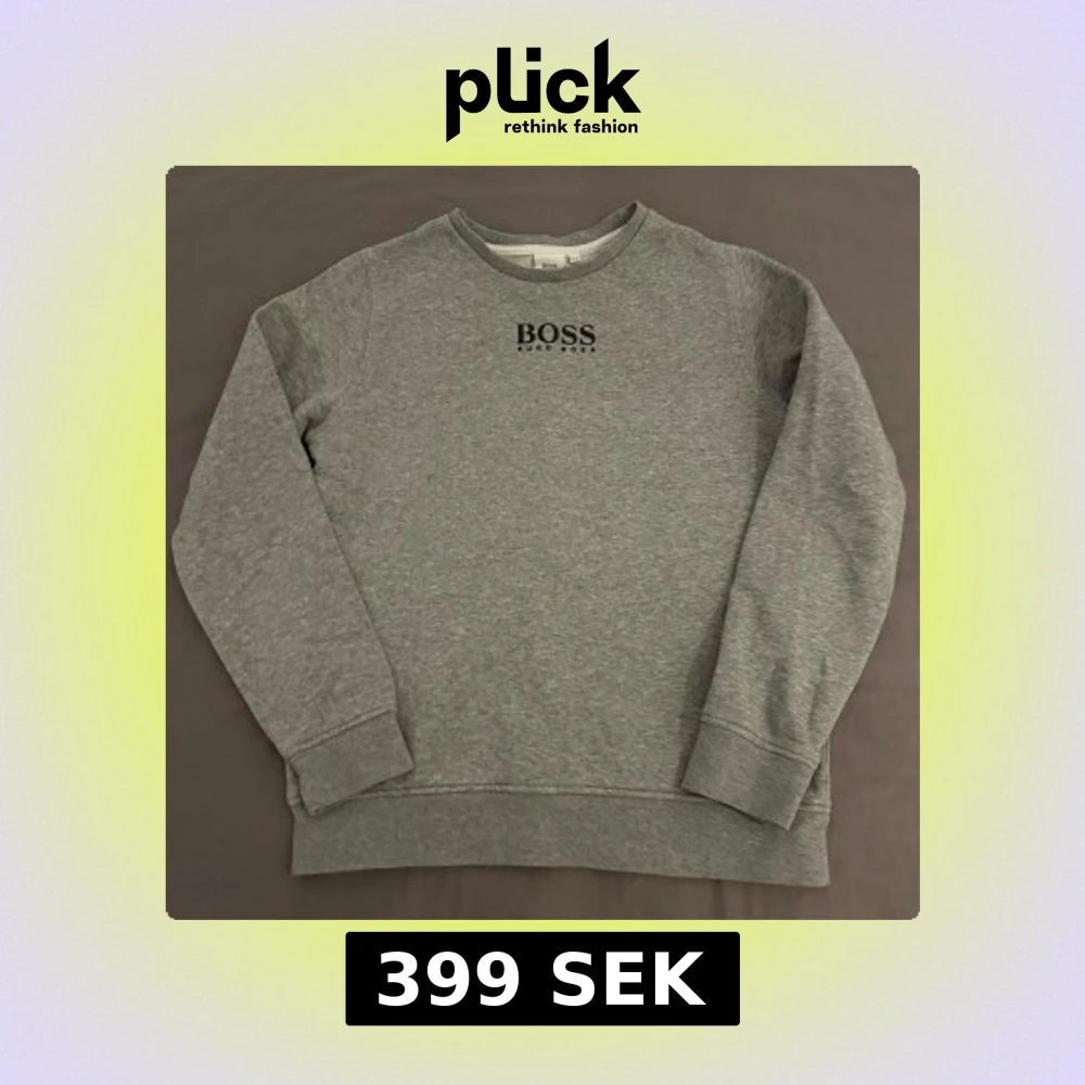 Storlek: Barn 11-13 år XS | A: 46cm | B: 58cm | C: 55cm | D: 42cm | E: 13cm | Grå Hugo Boss tröja som passar bra till barn, tröjan har använts max 5 gånger