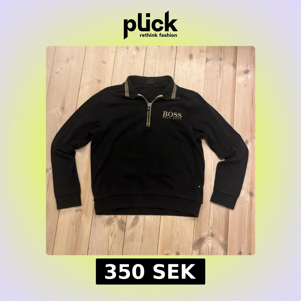 Snygg svart tröja från Hugo Boss med dragkedja och logotyp på bröstet. Tröjan har långa ärmar och en stilren design, perfekt för en avslappnad men ändå elegant look. Passar Xs-S. Är öppen för bud.