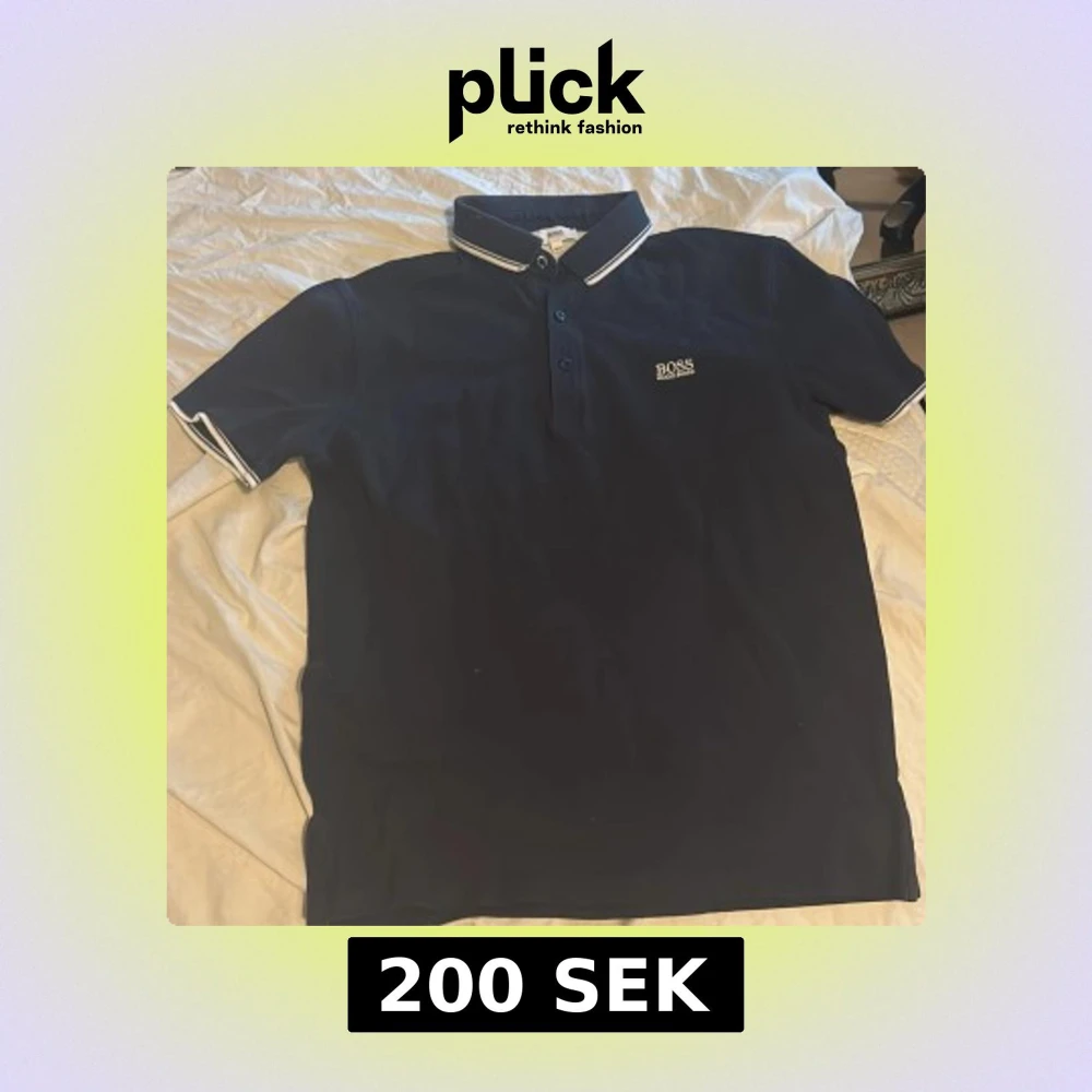Snygg marinblå pikétröja från Hugo Boss med vit broderad logga på bröstet. Tröjan har klassisk krage med vita ränder och korta ärmar med matchande kant. Tillverkad i mjuk bomull som känns skön mot huden. Perfekt för dig som gillar stilrena och sportiga vibes.
