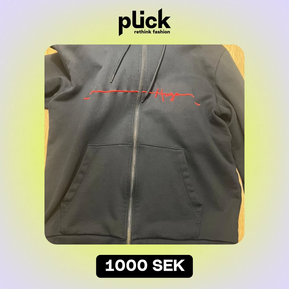 Säljer en stilren svart hoodie från Hugo Boss med röd logga på bröstet. Den har en dragkedja framtill. Perfekt för både vardag och chill. Passar bra till jeans eller joggers. Hör av dig om du är intresserad! 🖤