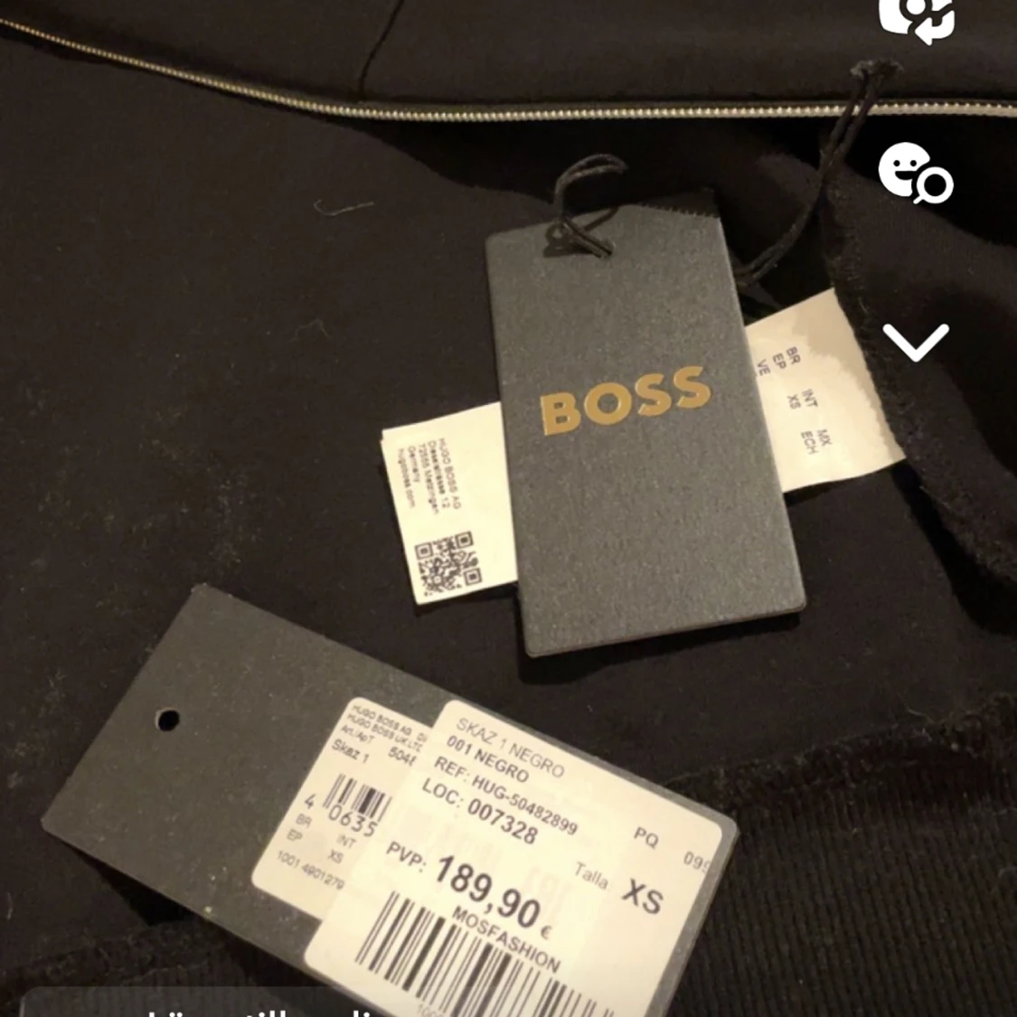 Köpt för 4månader sen utomlands för 2100kr på ett ungefär allt finns med tröjan och det är storlek xs med passar s/m