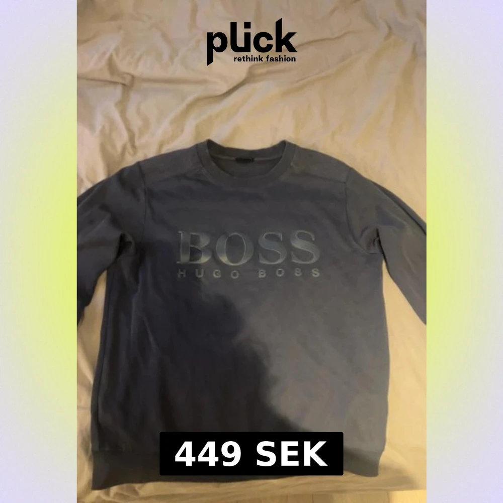 Snygg blå tröja från Hugo Boss i slim fit-modell med stort BOSS-tryck på bröstet och som är i storlek S. Tröjan har rund hals, långa ärmar och ribbade muddar vid ärmslut och nederkant. Perfekt för dig som gillar stilrena och klassiska plagg med en modern touch.