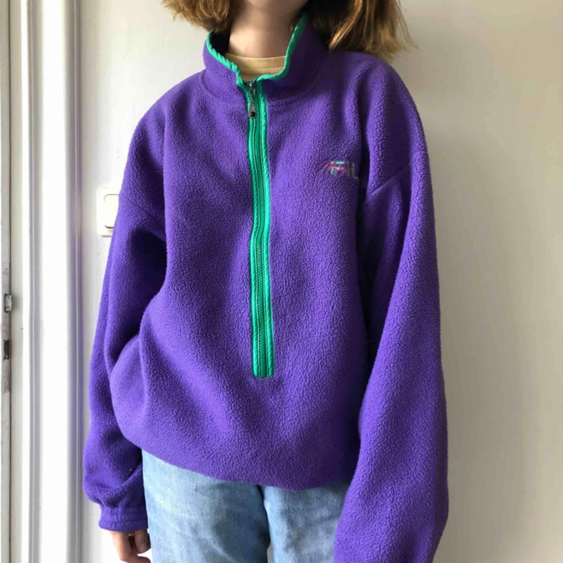 En tjock fleecetröja från fila! Riktigt coola färger och bra material. Passar perfekt nu när det börjar bli kallare! Jag bär normalt storlek S i kläder. Möts i stockholm :)