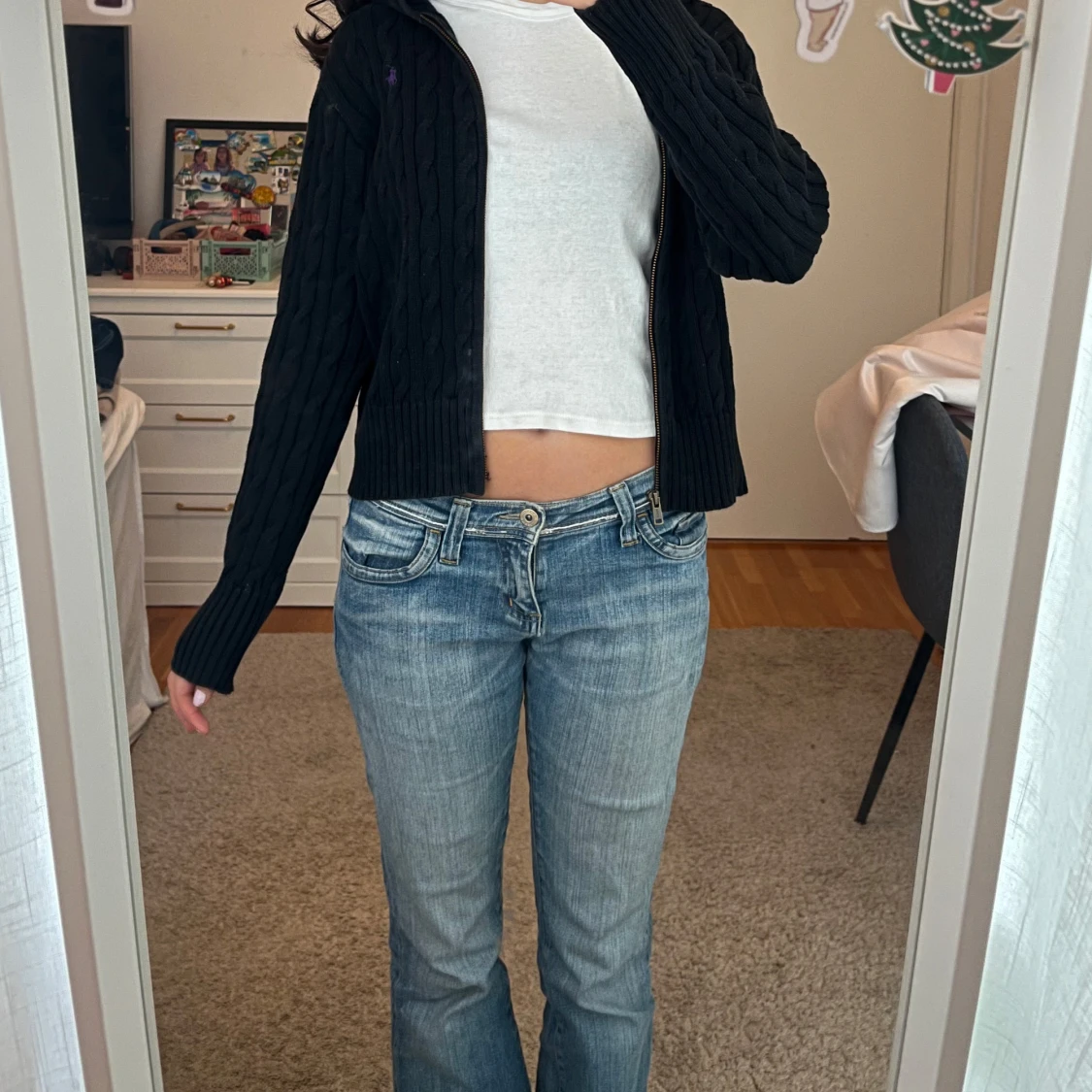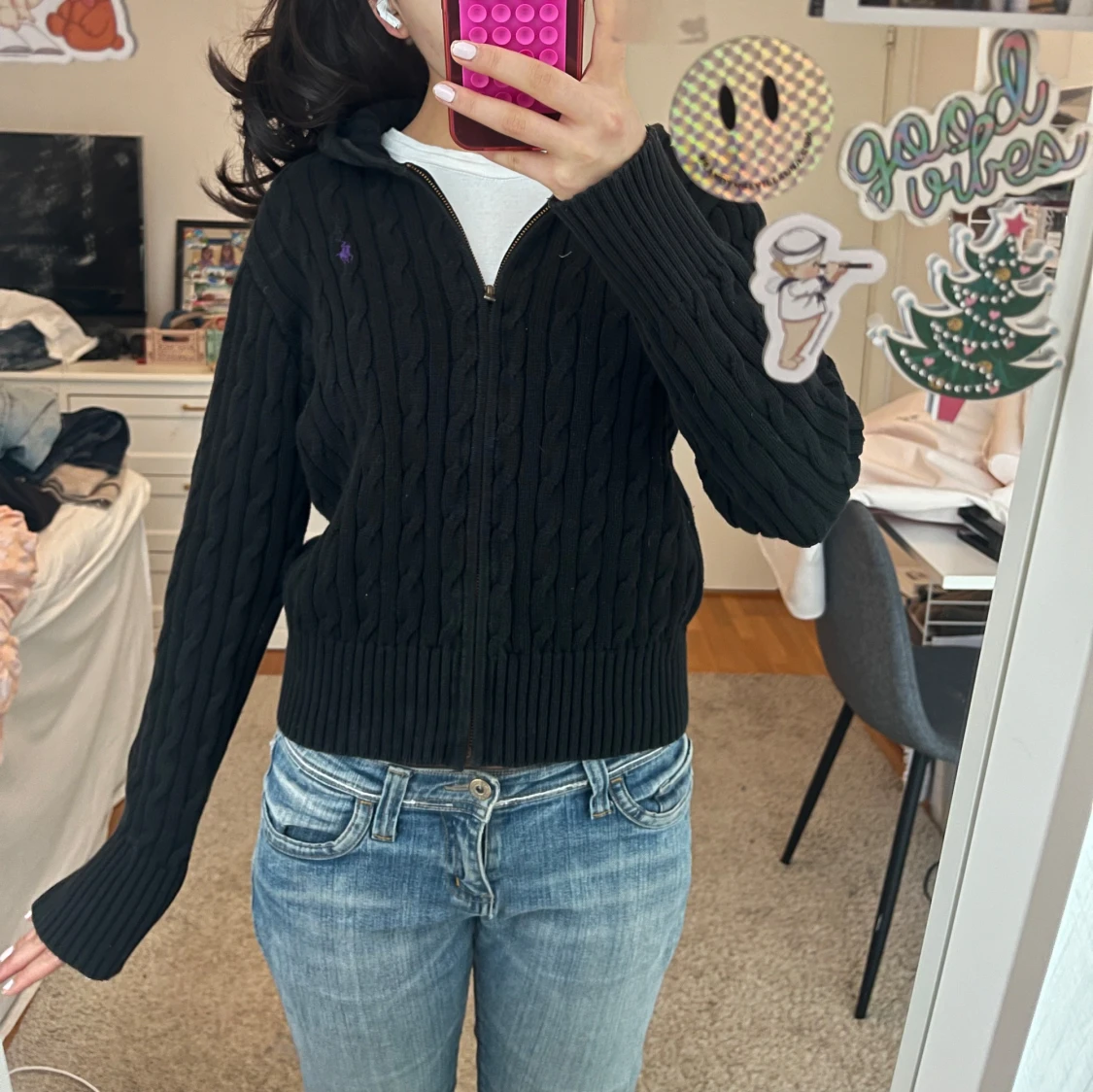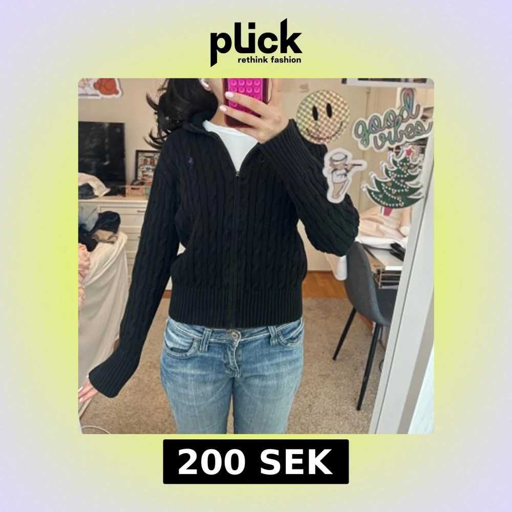 Såå snygg svart stickad ralph lauren kofta med dragkedja och kabelstickat mönster. Barn storlek 16 men passar mig som vanligtvis har xs-s