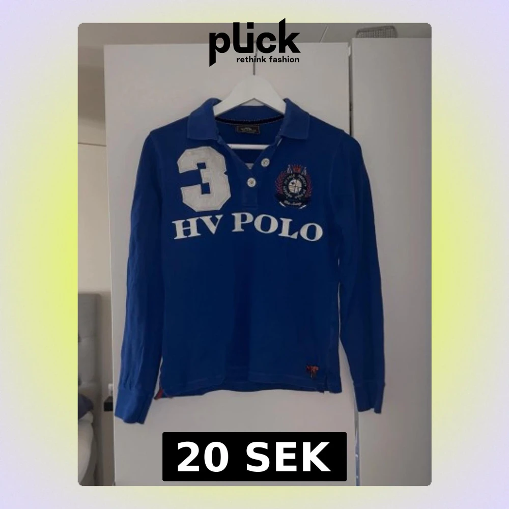 Blå långärmad pikétröja i storlek S ifrån HV POLO. Logga fram och bak. Väldigt fint skick, inga defekter 💙