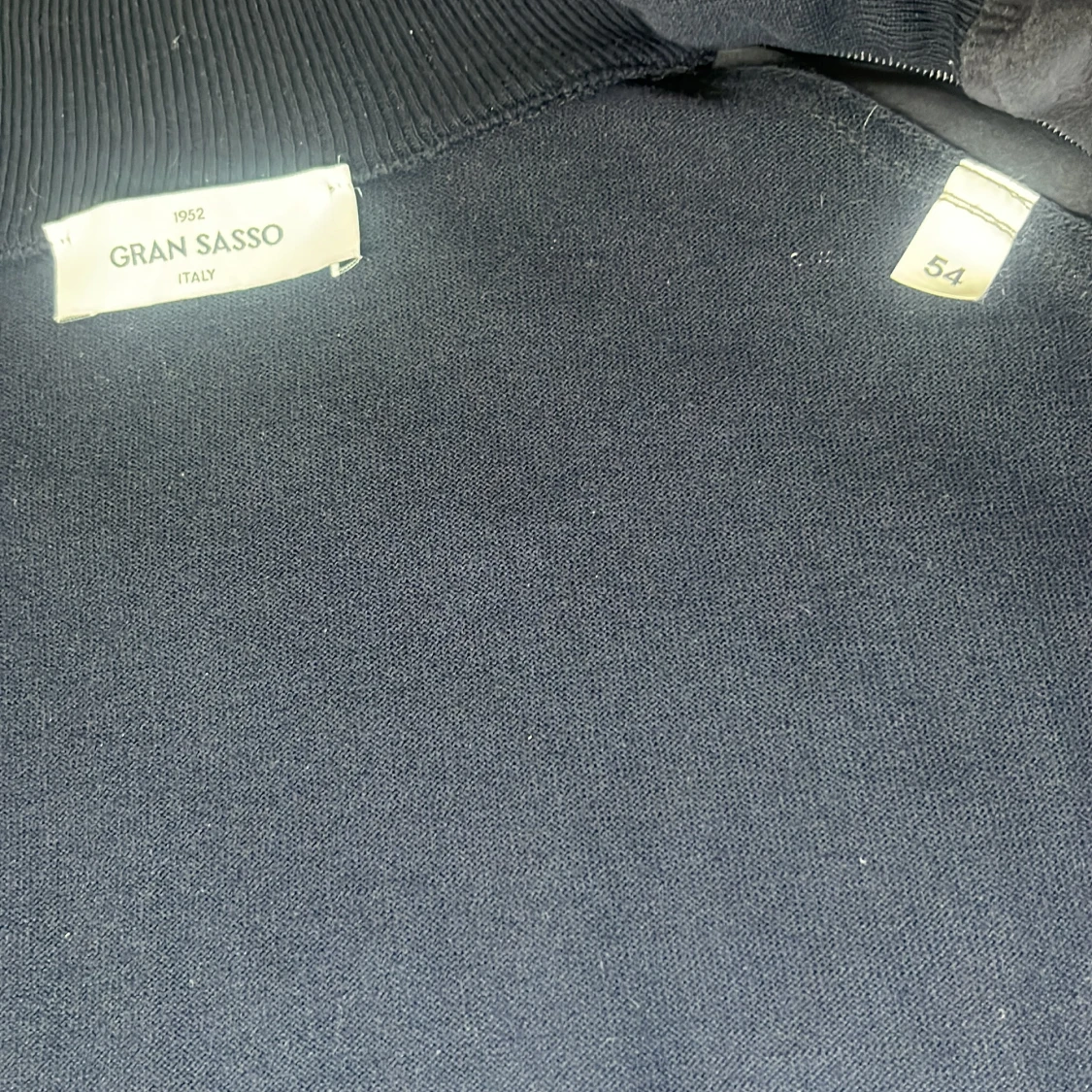 Tja! Säljer nu denna eftertraktade Gran Sasso Cardiganen i toppskick (9/10) utan några defekter! Den är i storlek 54 men sitter som M/L! Midjan är mycket stretch så passar de mesta. Den har en framsida av marinblå mocka och har stickade armar och rygg! Nypris 4200kr, mitt pris endast 1699! Hör av dig vid minsta fundering eller fråga!🌟