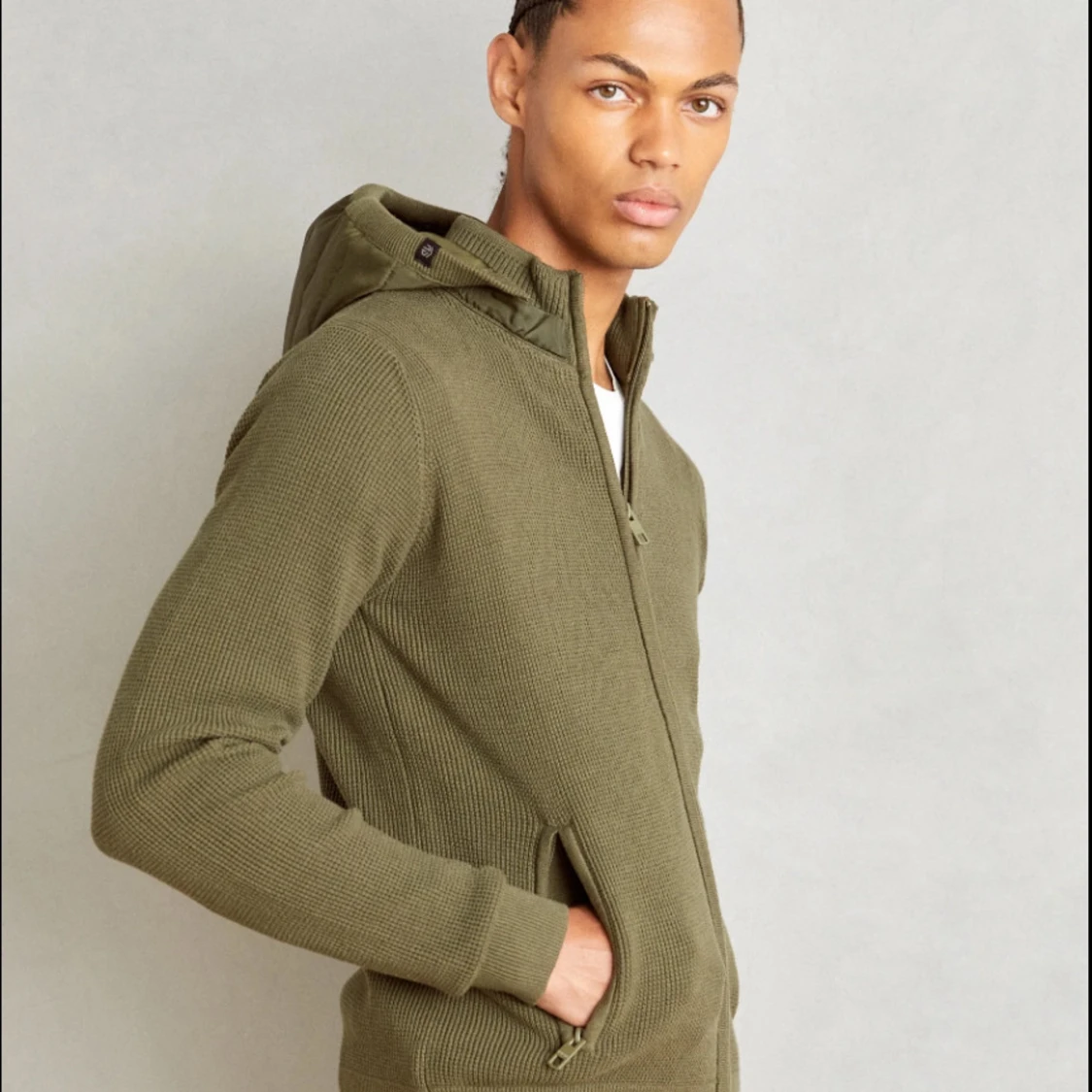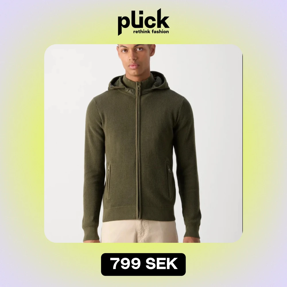 Snygg och extremt eftertraktad: olivgrön stickad cardigan med dragkedja och huva. Perfekt för kyliga dagar med sin ribbade struktur och praktiska fickor med dragkedja. En stilren och bekväm tröja för alla tillfällen. Slutsåld överallt