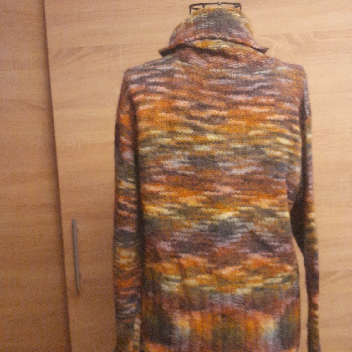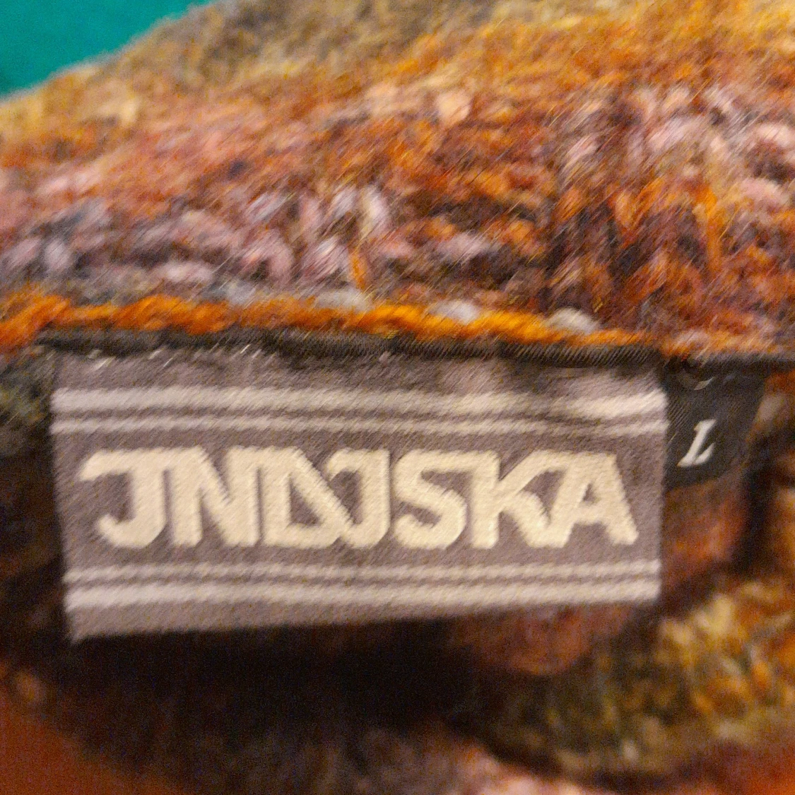 Säljer en stickad polotröja från Indiska i storlek L. Tröjan har en mysig polokrage och ett färgstarkt mönster i orange, brunt, gult och lila. Perfekt för dig som gillar unika plagg med höstig vibe och skön passform. Långärmad och supermjuk.