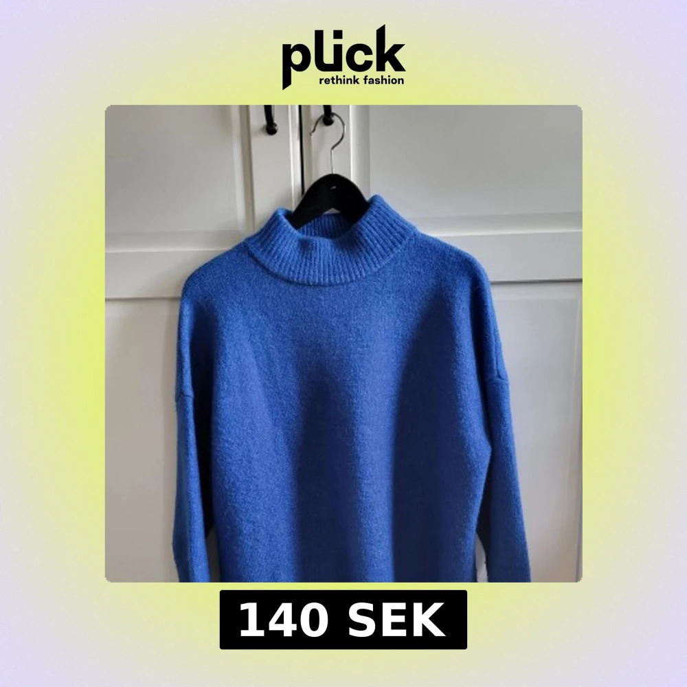 Mysig blå stickad polotröja från Indiska i storlek M. Tröjan har en hög ribbad krage och långa ärmar med breda ribbade muddar. Endast provad. Hör av dig med frågor, är öppen för prisförslag 🌸