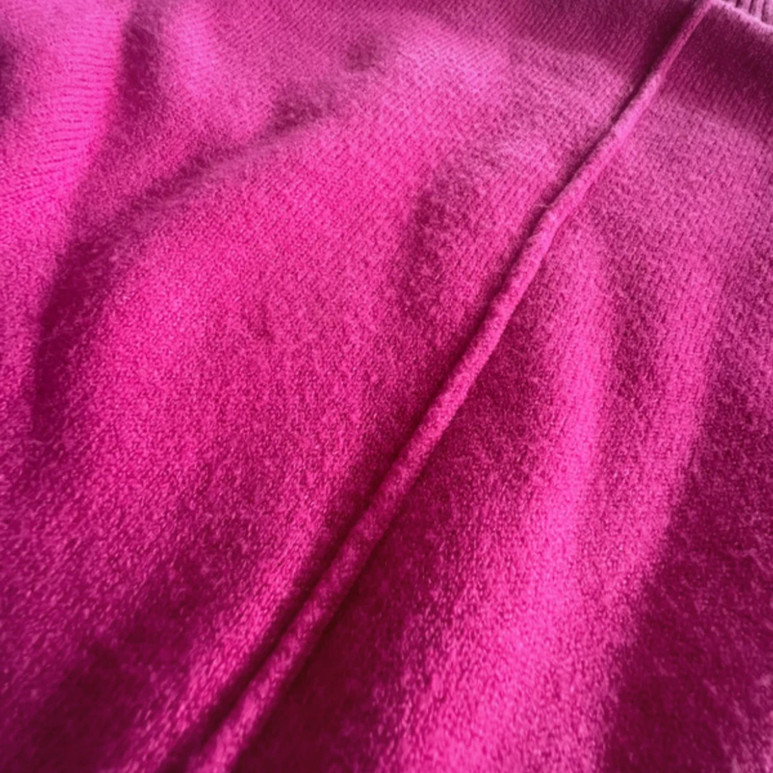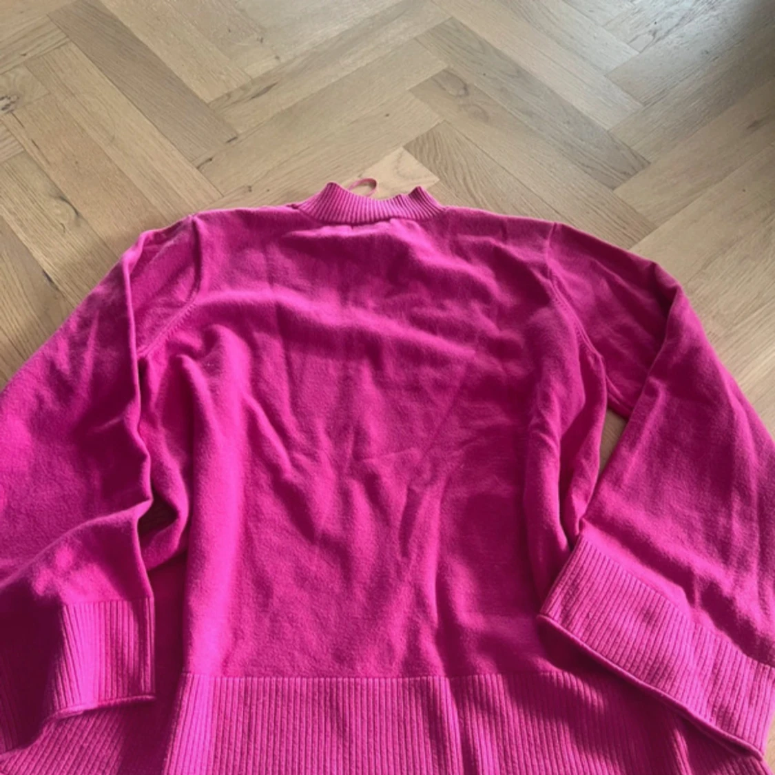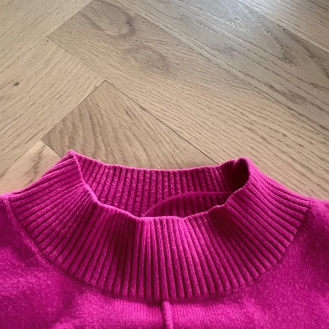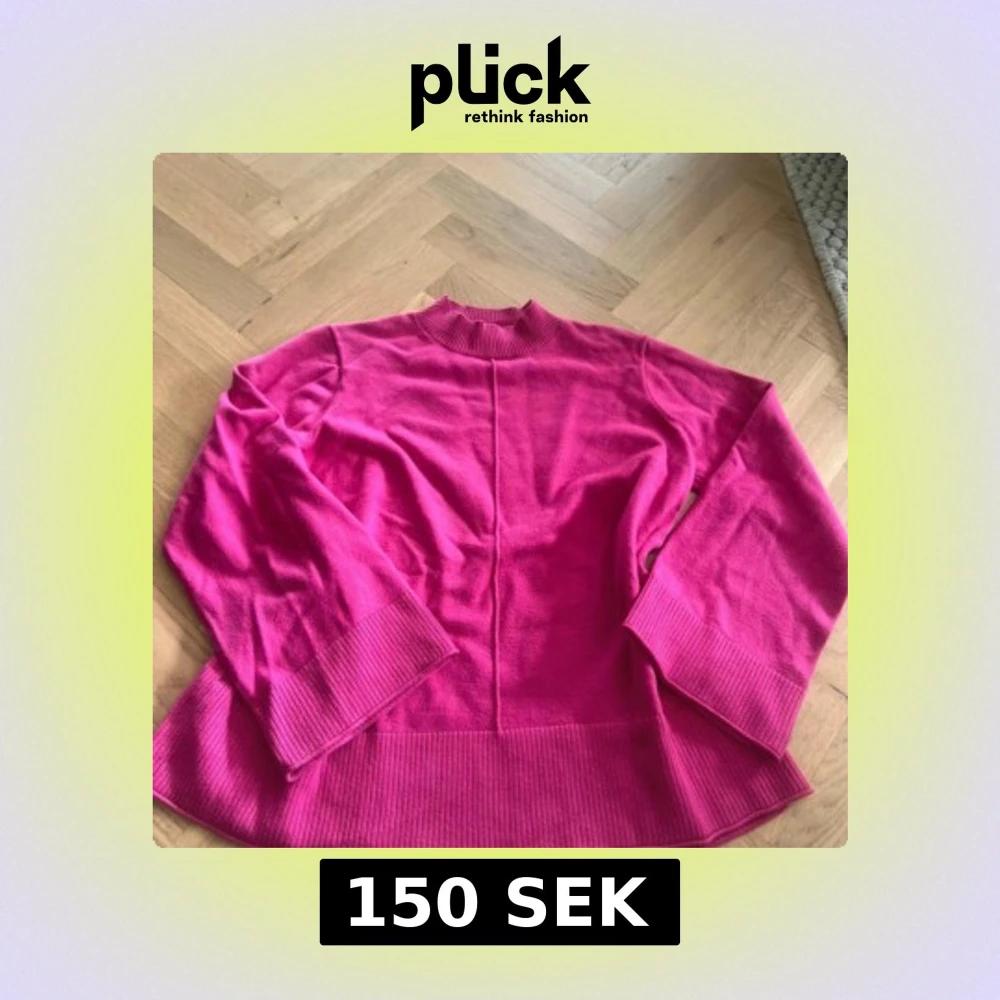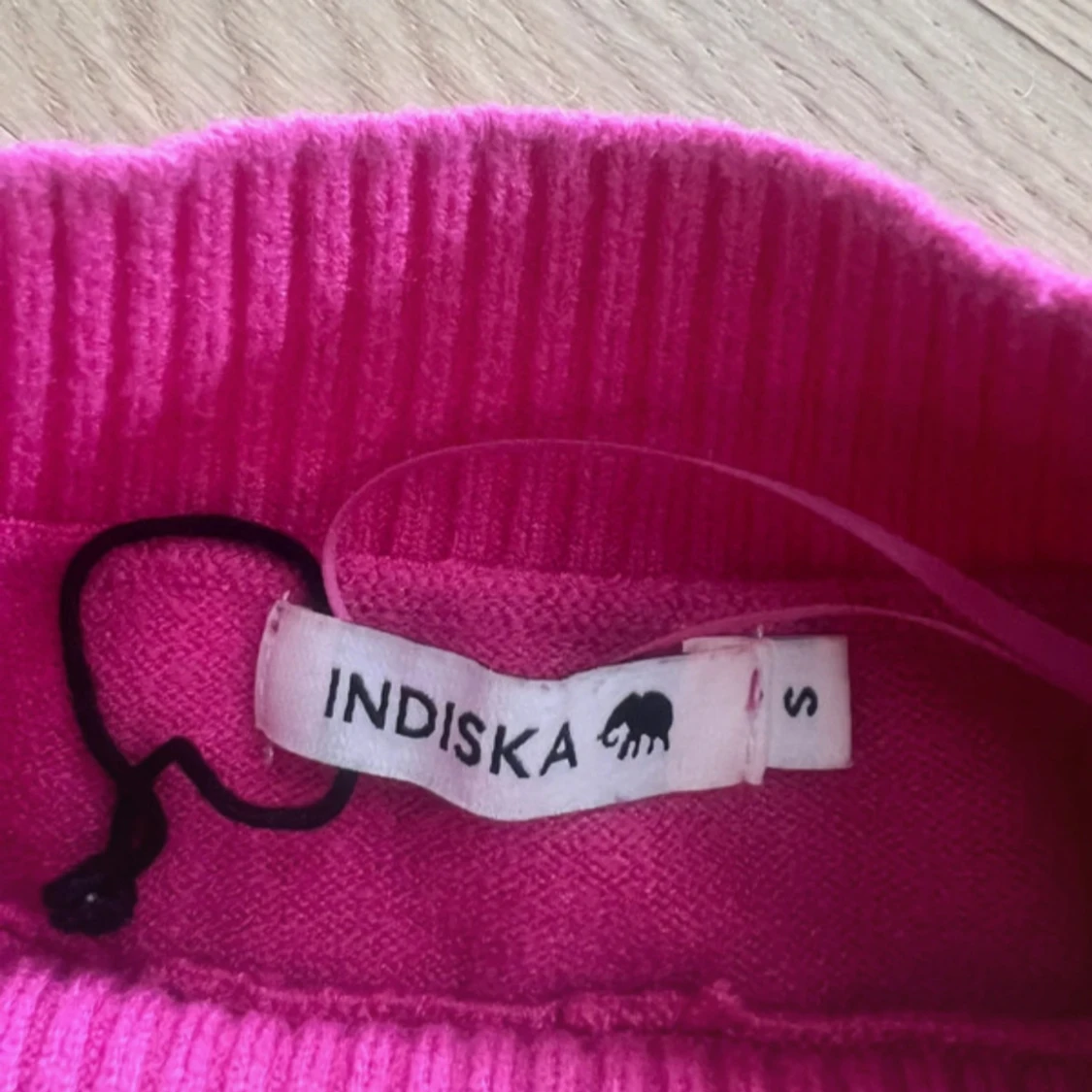 Säljer en ceriserosa stickad tröja från Indiska i storlek S. Tröjan har ribbade muddar vid ärmslut, nederkant och hals, samt en rak passform och lång ärm. Perfekt för dig som vill ha en färgklick i garderoben!
