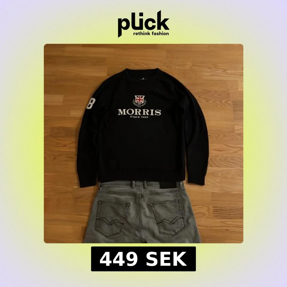 En riktigt snygg stickad Morris tröja i mörkblå färg som är i bra skick. Storleken är Medium och passar mig bra som är runt 180! Priset kan diskuteras det är bara att höra av dig vid några frågor!🤩😎😎
