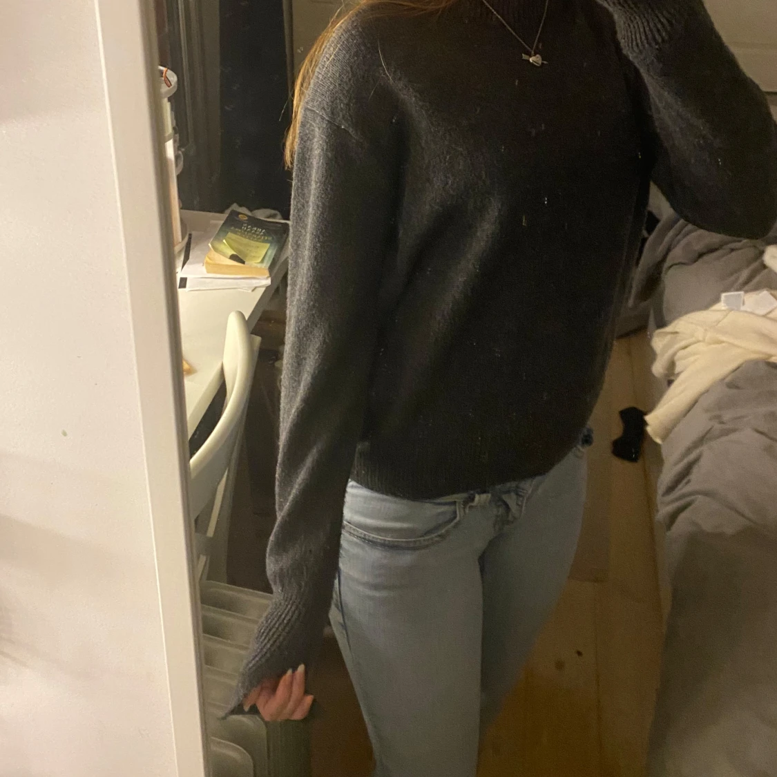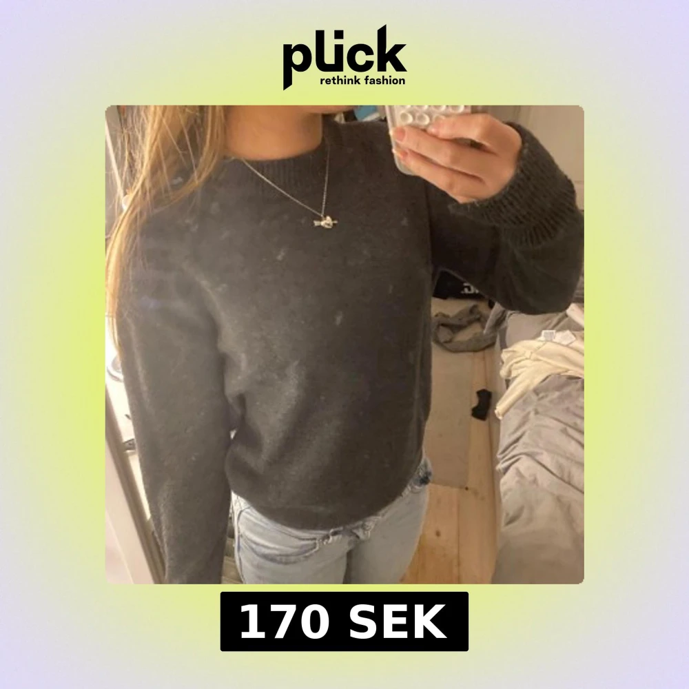 Säljer en s mörkgrå stickad tröja från H&M. Tröjan har slits vid ärmarna. Perfekt för kyligare dagar och lätt att matcha med olika outfits. Hör av dig vid intresse! 🖤