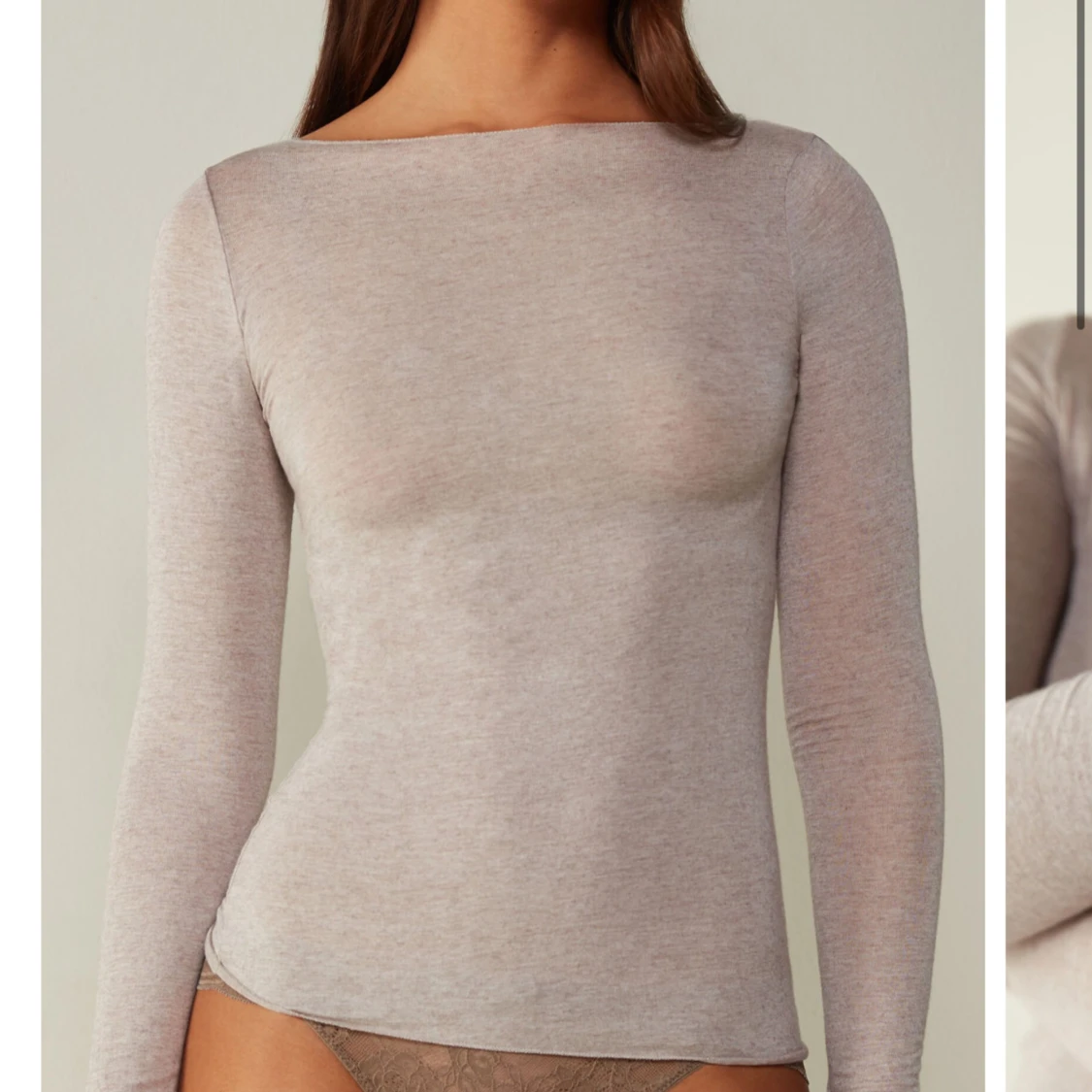 Båtringad cashmere tröja från intimissimi i färgen ”Natural - 7525 - Shell Beige Mélange”🤍 Som ny!! Nypris: 449.
