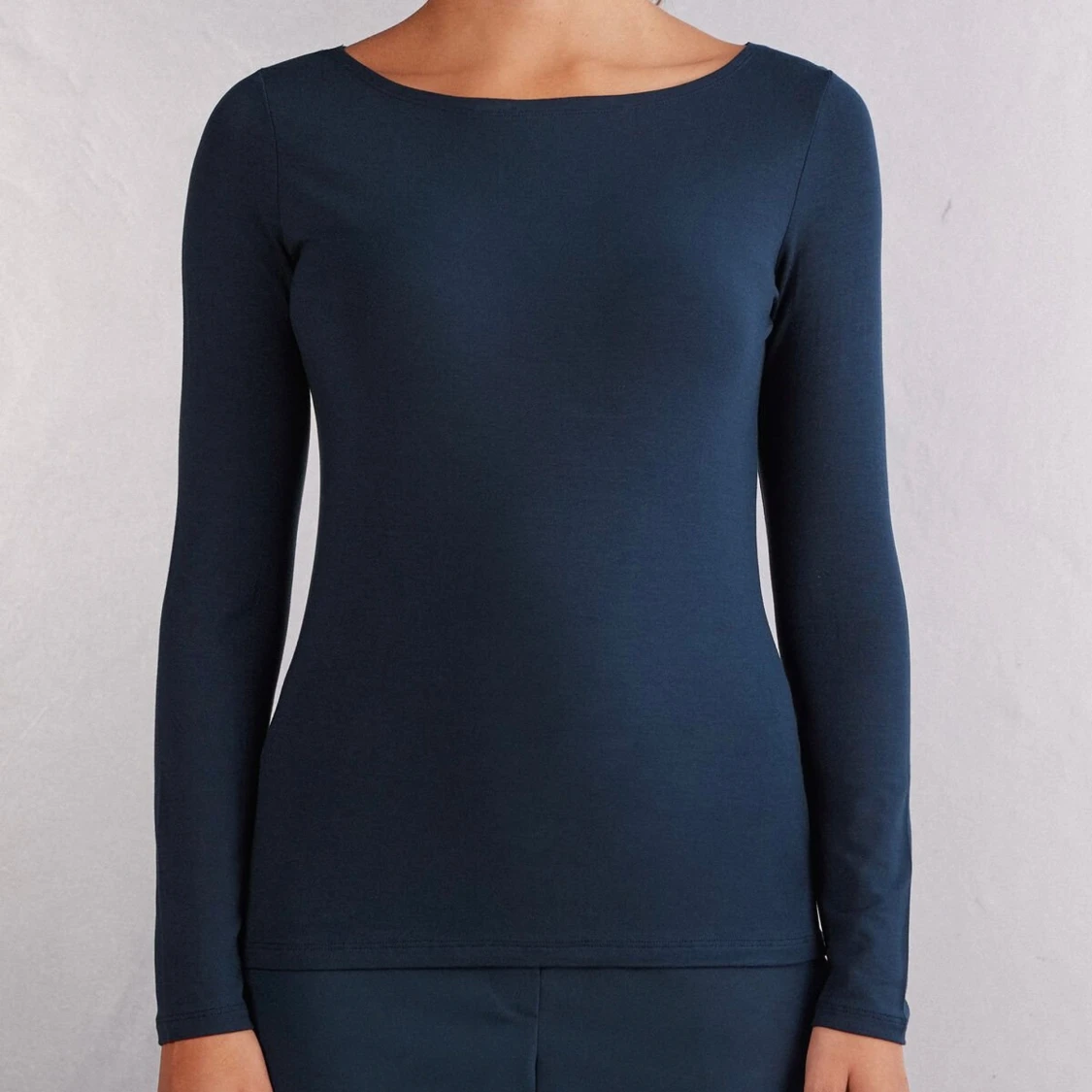 Mörkblå intimissimi tröja med båt krage, är i mycket fint skick. Inte mina bilder kom privat för egna!💌