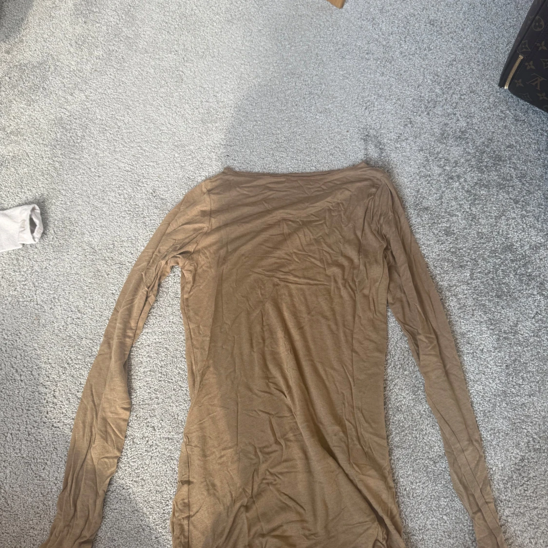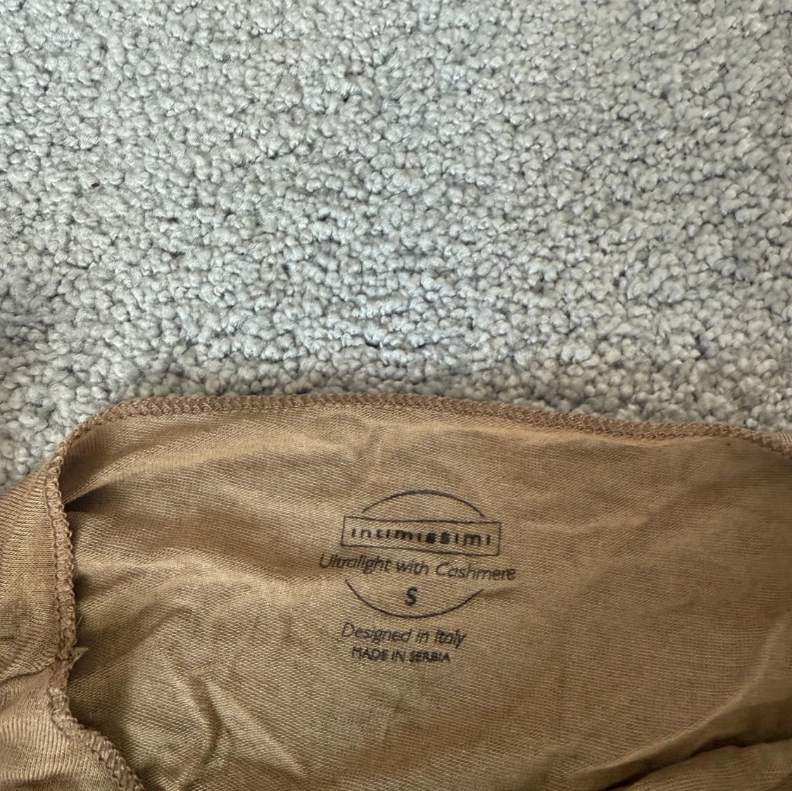 Slimmad och superlätt beige långärmad tröja från Intimissimi, tillverkad i en mjuk mix med kashmir. Enkel design med rund hals och tunn kvalitet som känns skön mot huden. Perfekt att styla med jeans eller kjol för en chill look. Bara testad