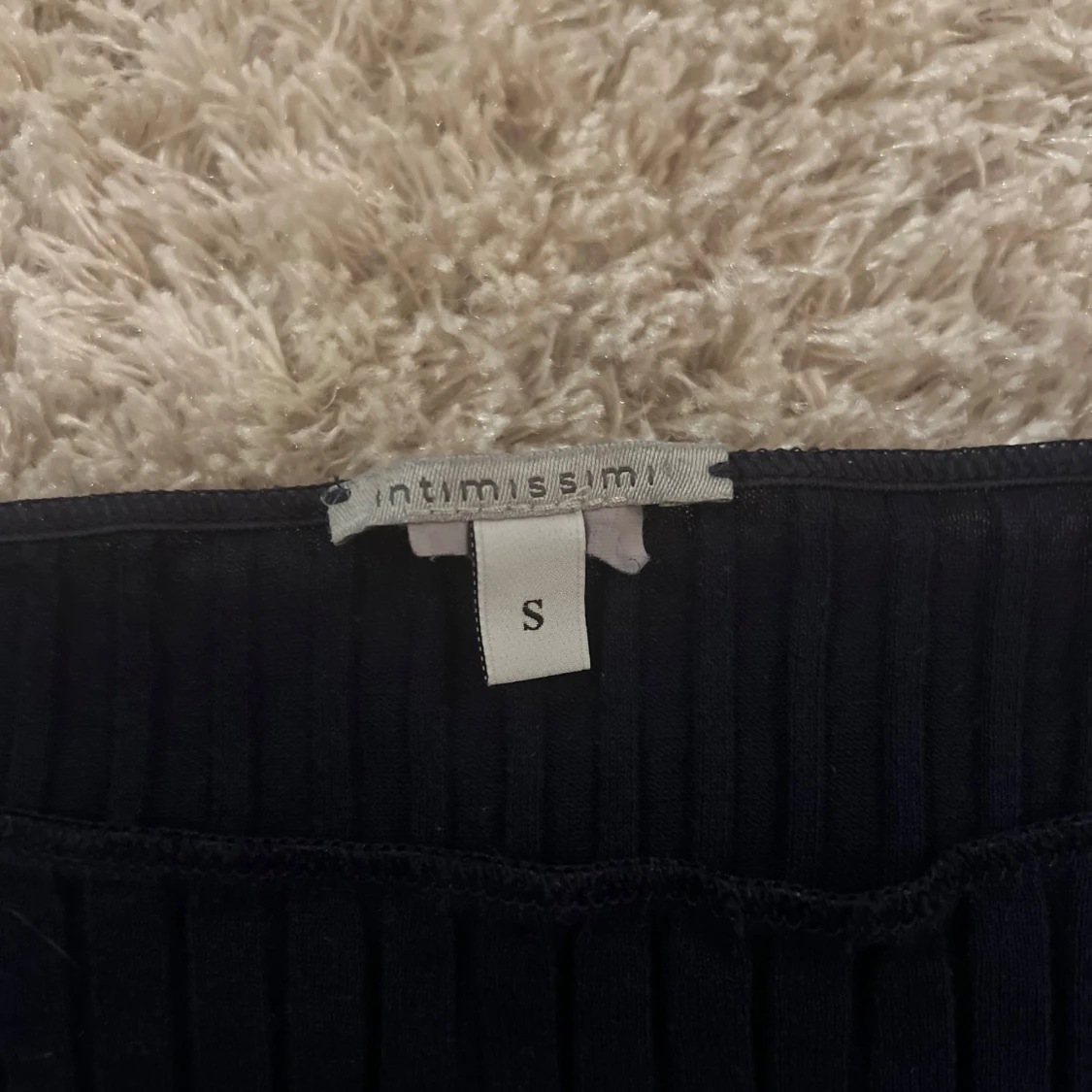 Säljer en stilren marinblå ribbad topp från Intimissimi i storlek S. Den har en tight passform och långa ärmar, perfekt för både vardag och fest. Materialet är mjukt och stretchigt, vilket gör den superbekväm att bära. Passar perfekt till höst- och vintergarderoben!