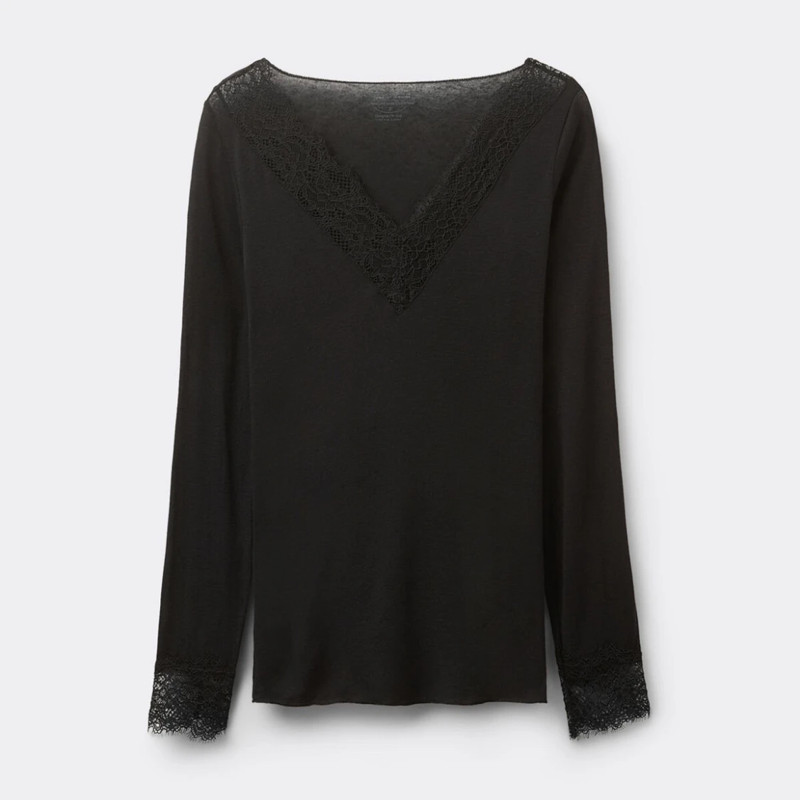Tröja från Intimissimi med spetsdetaljer i storlek S. Använd två gånger och har inga större defekter förutom någon tråd som gått upp vilket man kan se på bild 2. Däremot är det ingenting man tänker på när tröjan är på!!
