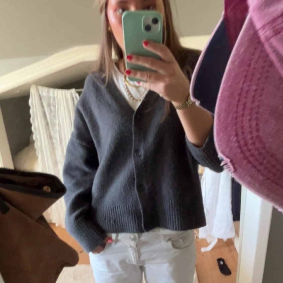 Jättesnygg och skön mörk grå kofta jättenajs nu i höst🍂🍂🩷🩷