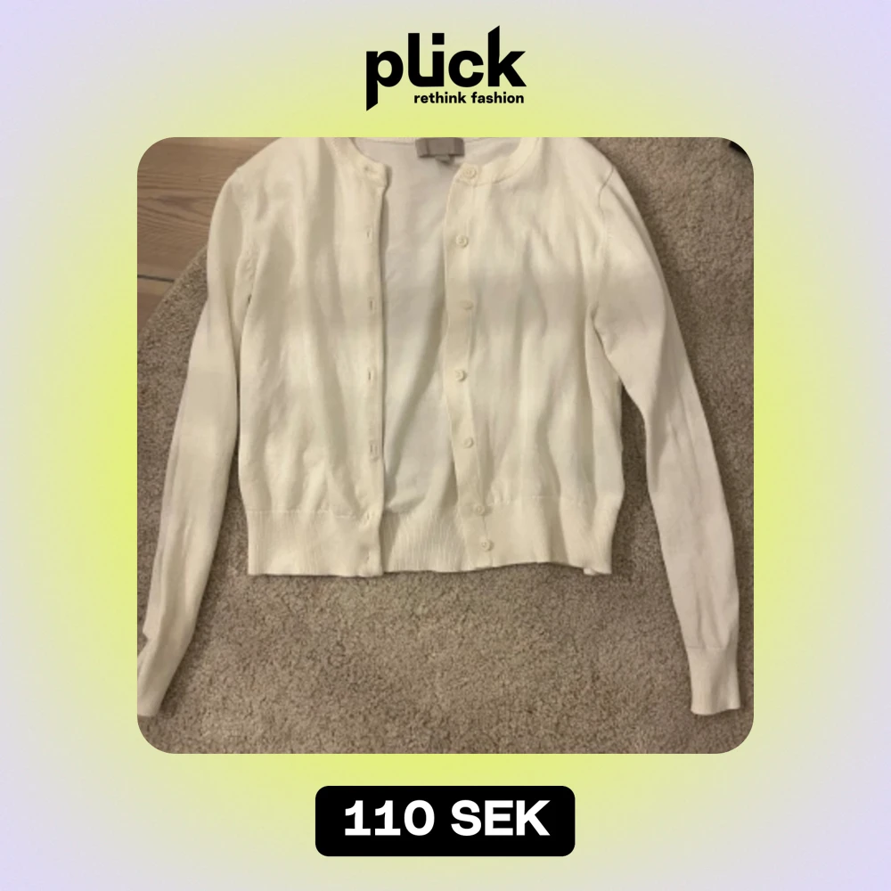 Vit kofta från hm i bra skick. Ser kortare ut på bilden när jag har den på mig då jag drog upp den lite för jag tycker den blir snyggare så🤍skicka gärna prisförslag